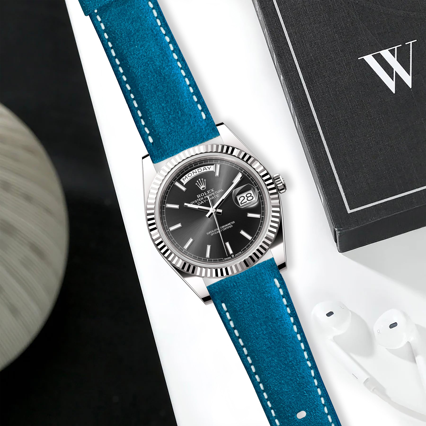 Rolex Daydate Straps - Suede Cyan Blue