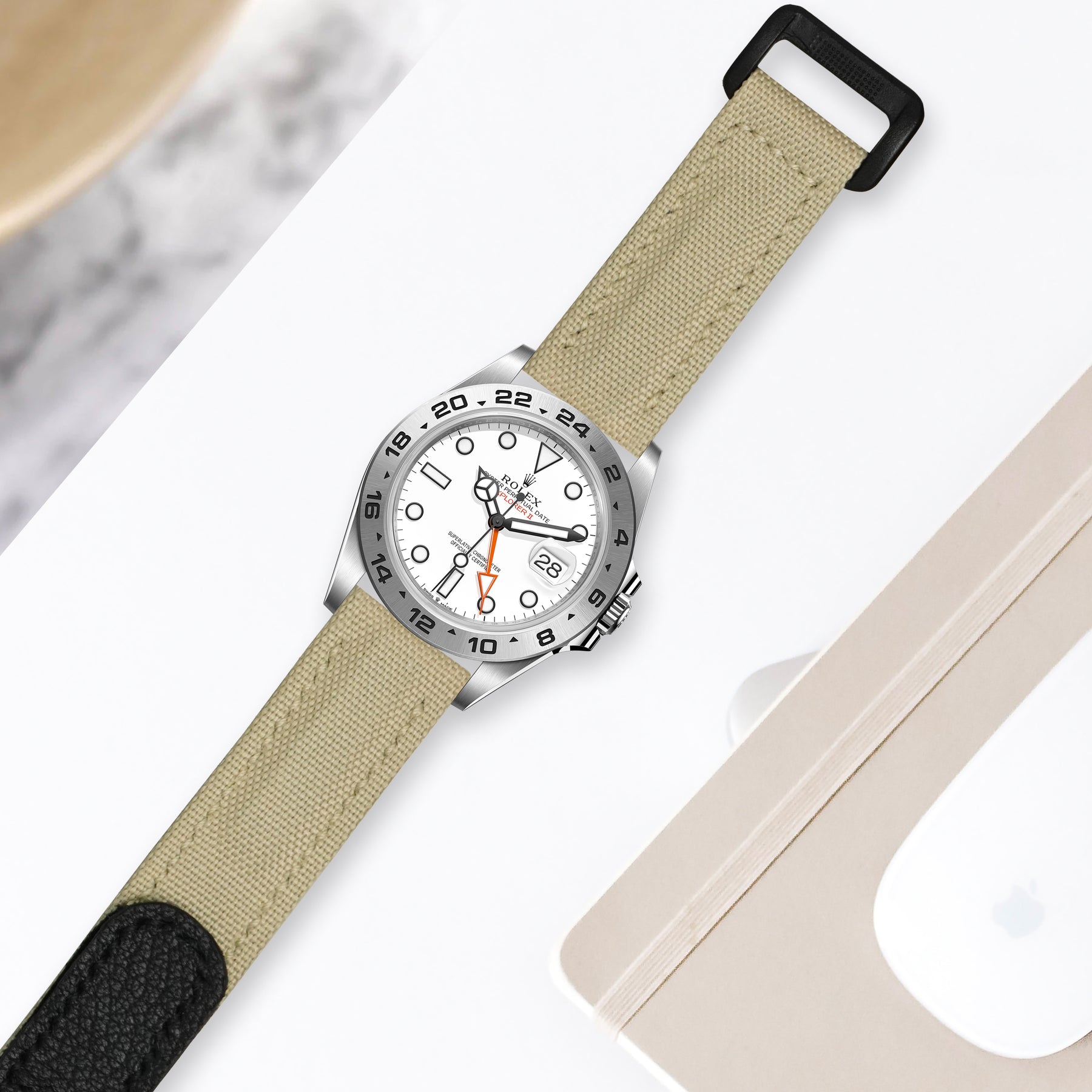 Rolex Explorer Straps - Velcro Canvas Extreme Padded Beige