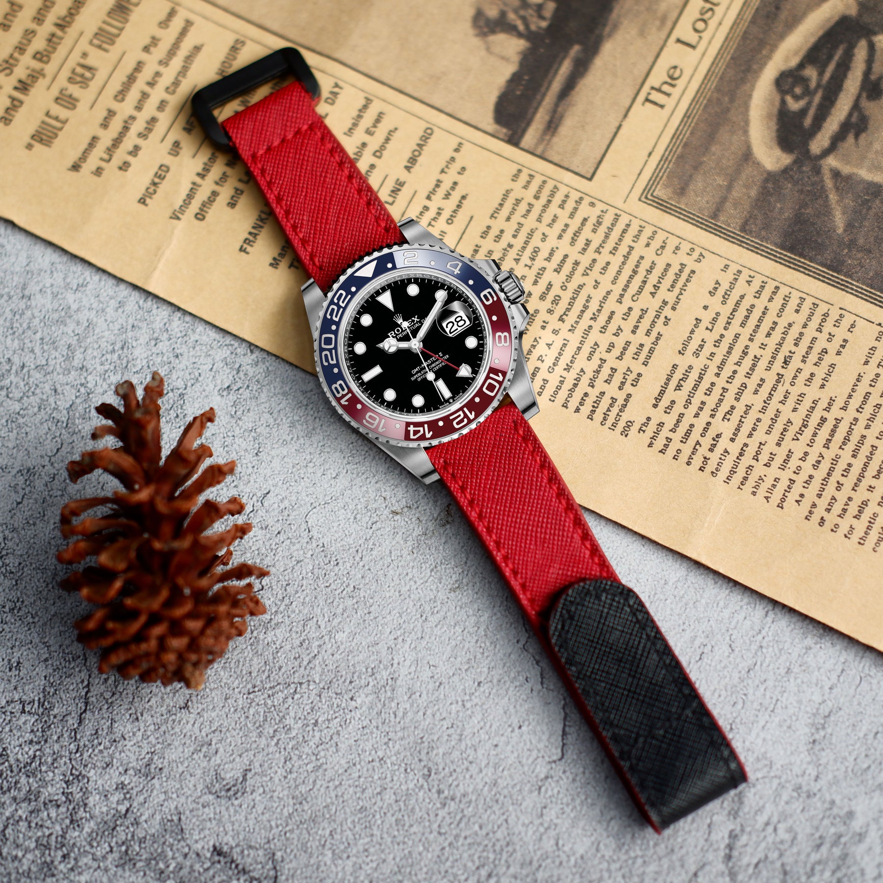 Rolex GMT Master II Straps - Velcro Saffiano Red