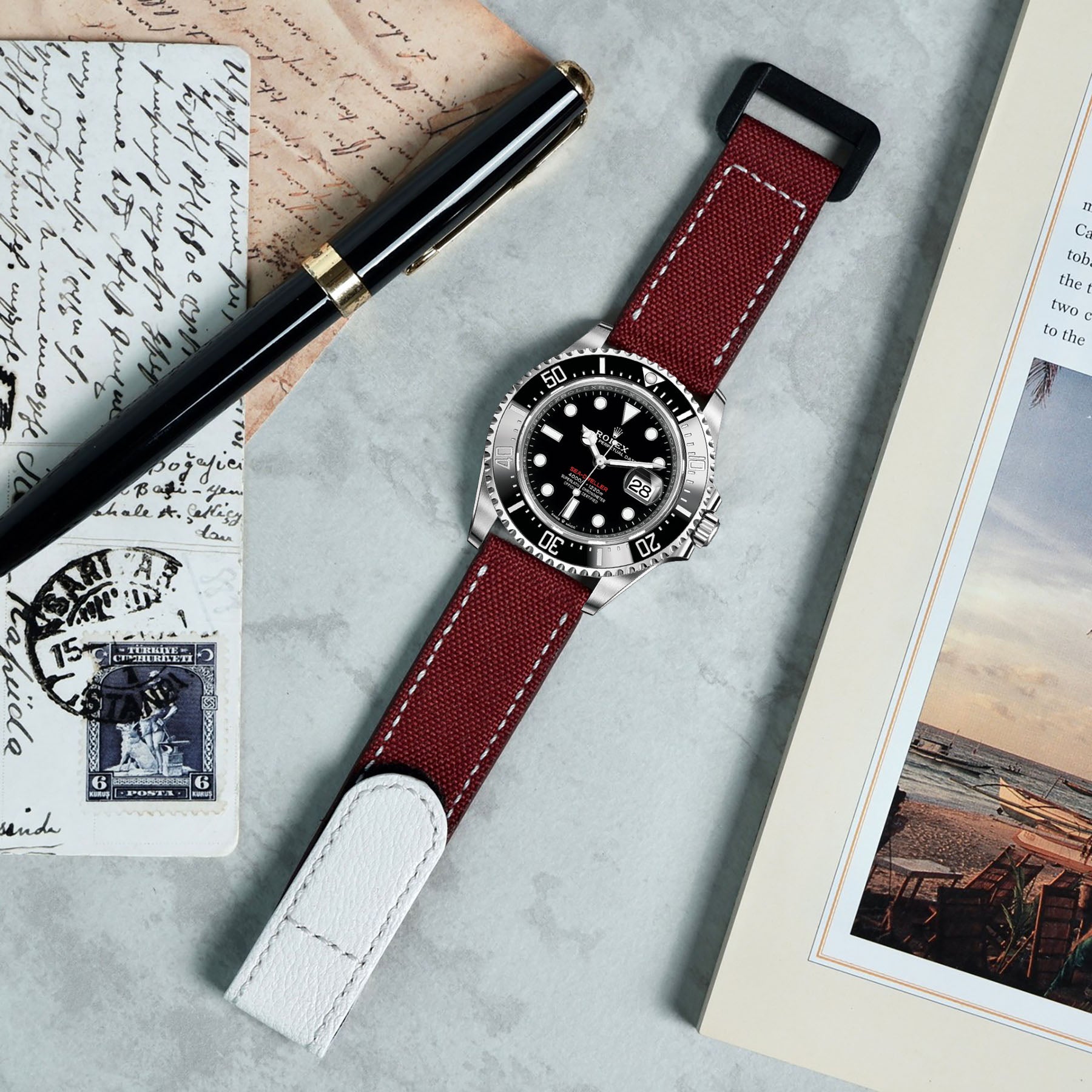 Rolex Sea-Dweller Straps - Velcro Canvas Maroon White
