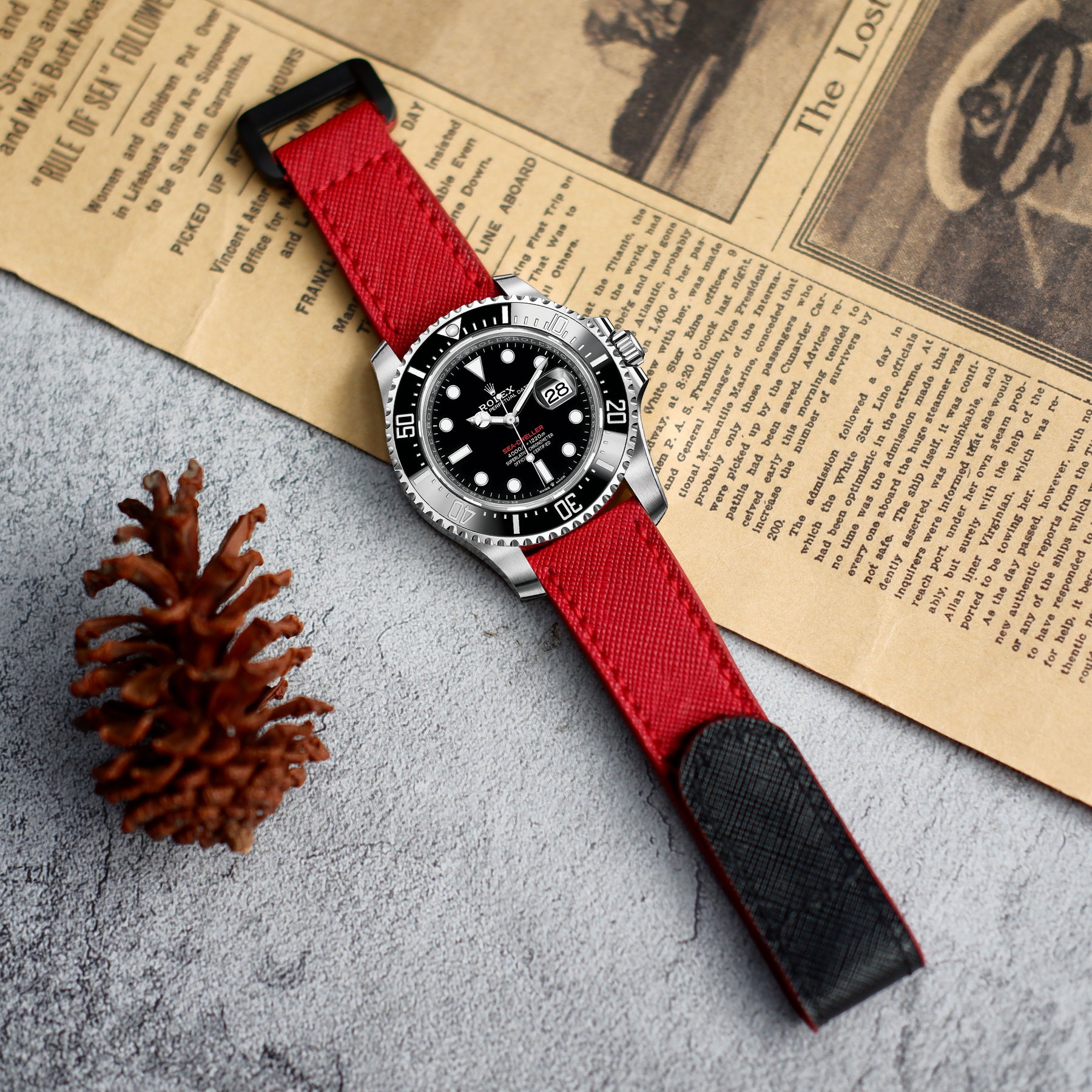 Rolex Sea-Dweller Straps - Velcro Saffiano Red