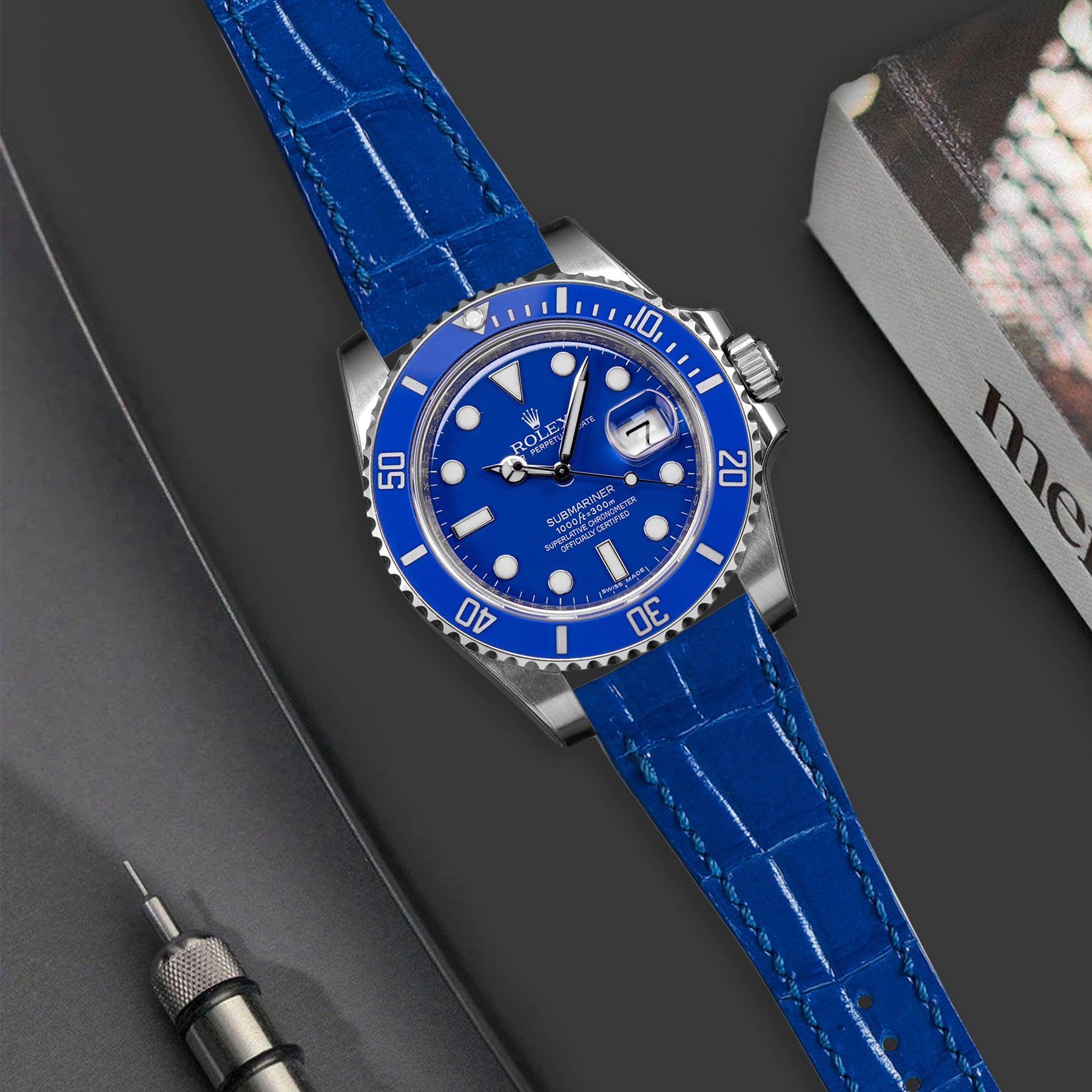 Rolex Submariner Straps - Croco Blue Batman