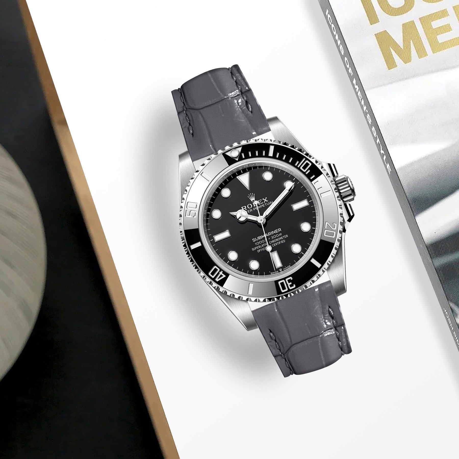Rolex Submariner Straps - Croco Moon Grey