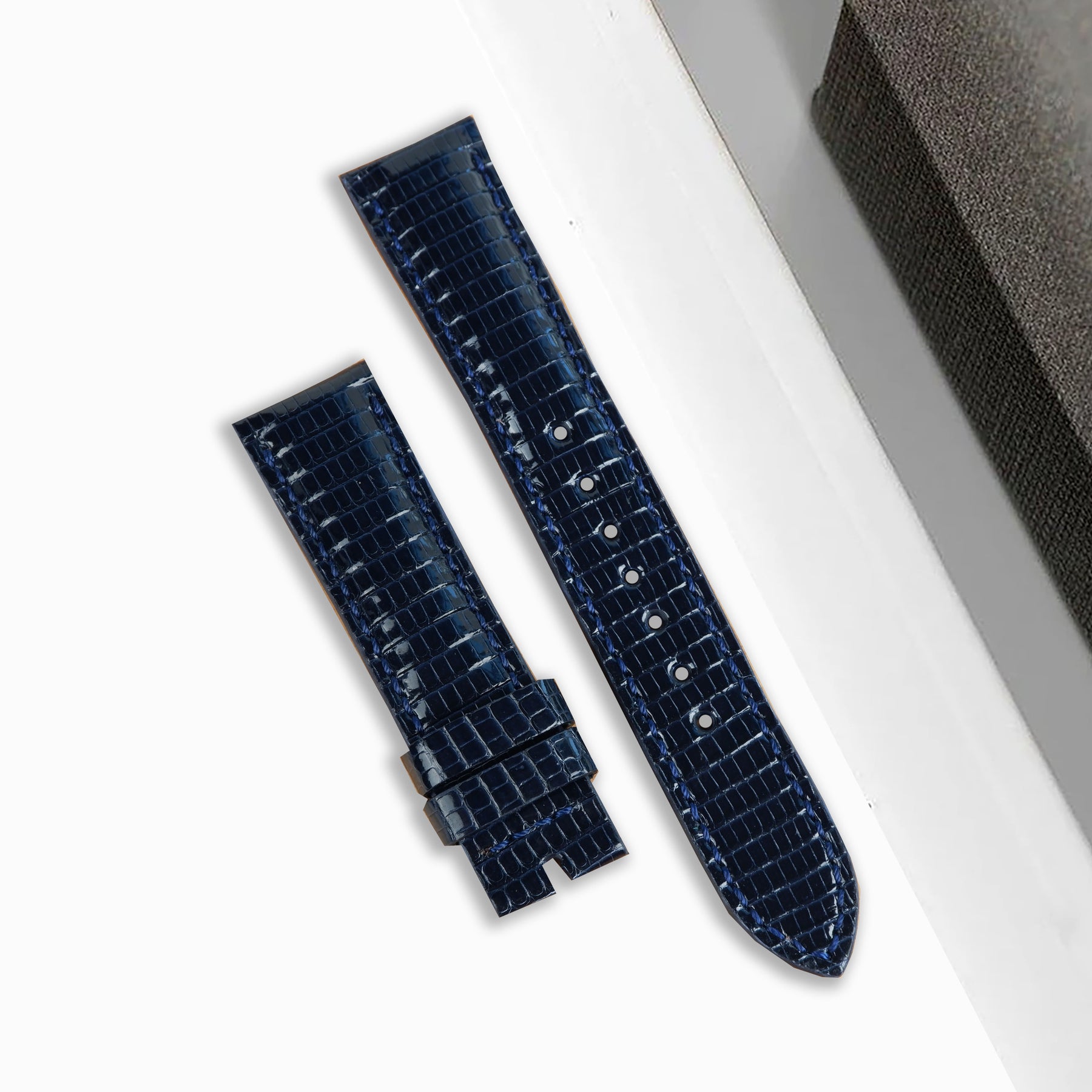 Description : Luxurious lizard leather with its typical small scales is manufactured from first-class lizard, tanned with a very special treatment and seamlessly joined to a layer of soft lining leather. That's why each piece of watch strap has unique pattern.