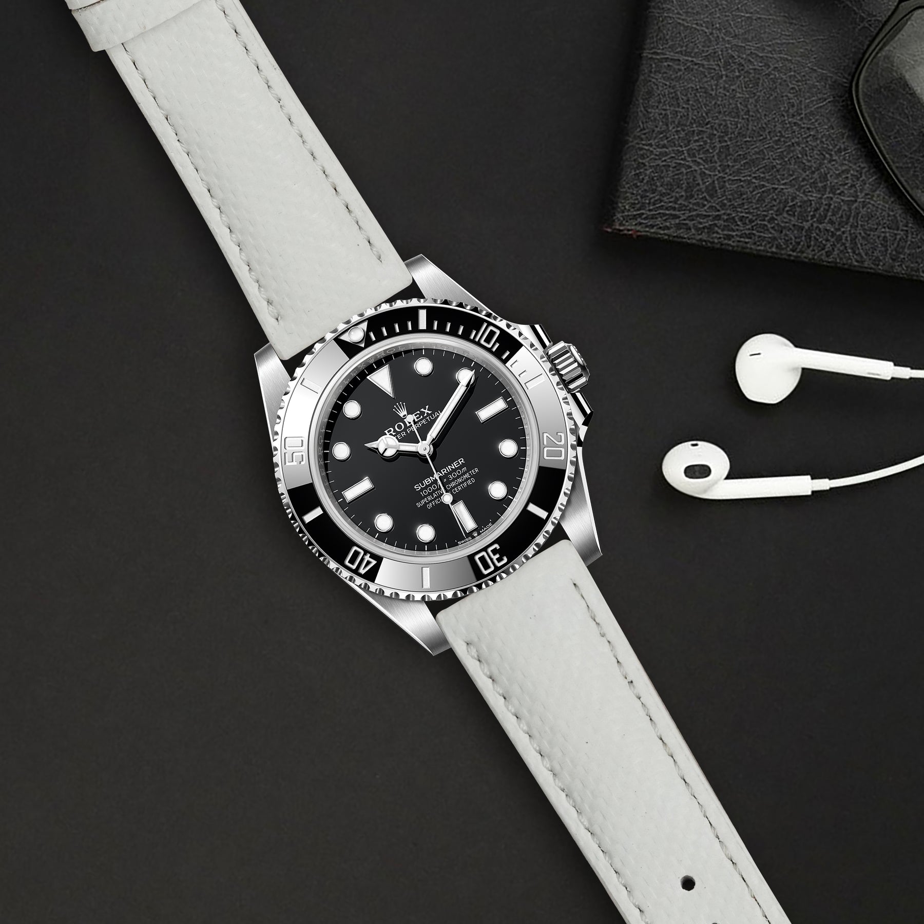 Rolex Submariner Straps - Carbon Fiber White
