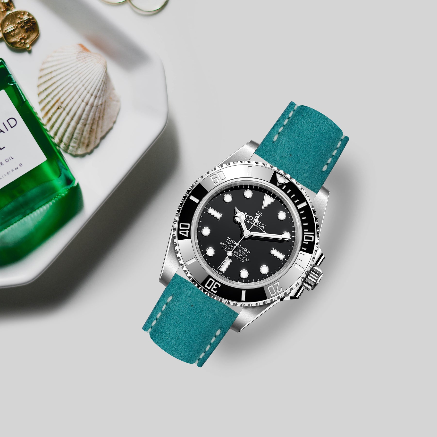 Rolex Submariner Straps - Suede Acqua