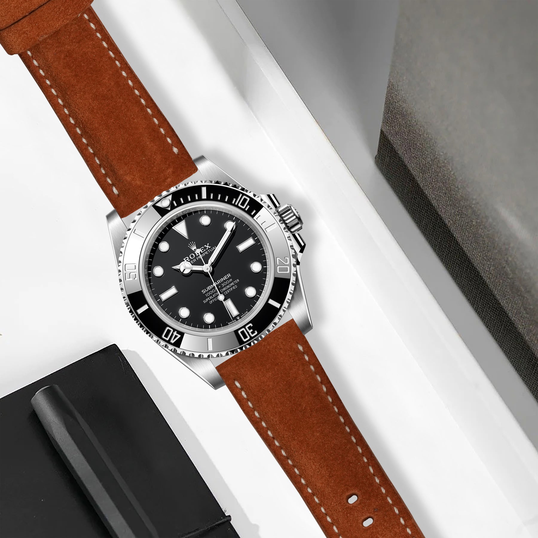 Rolex Submariner Straps - Suede Chestnut