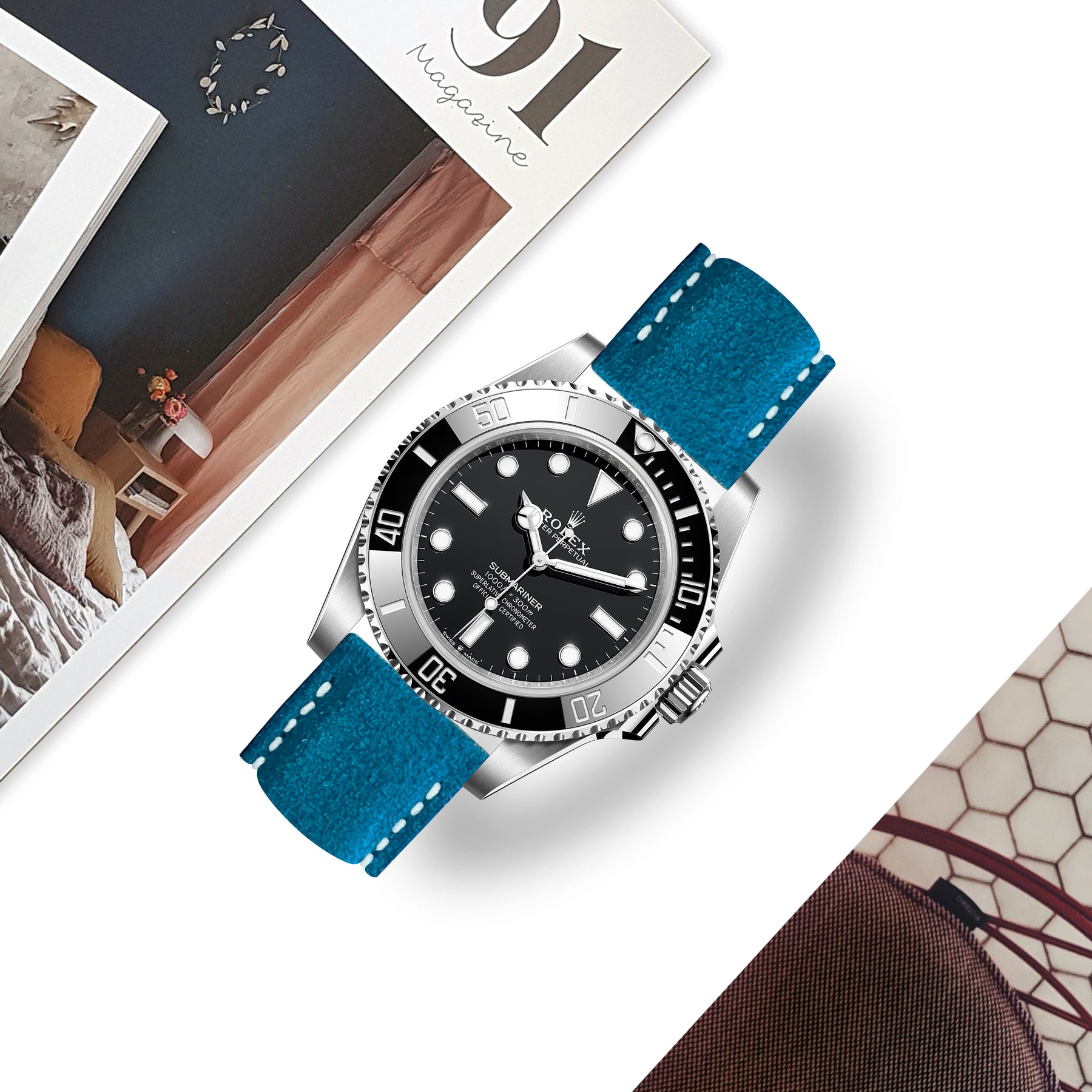 Rolex Submariner Straps - Suede Cyan Blue