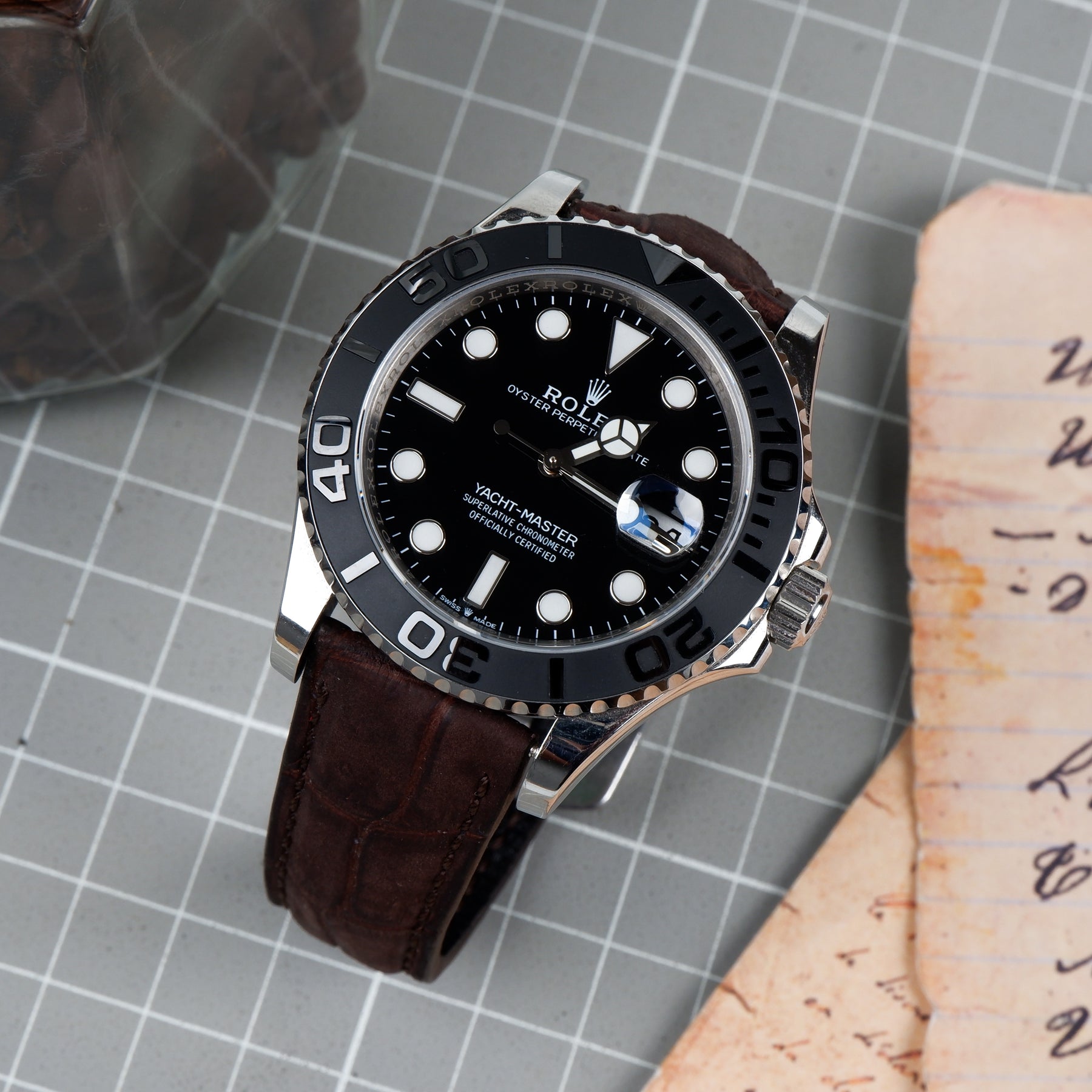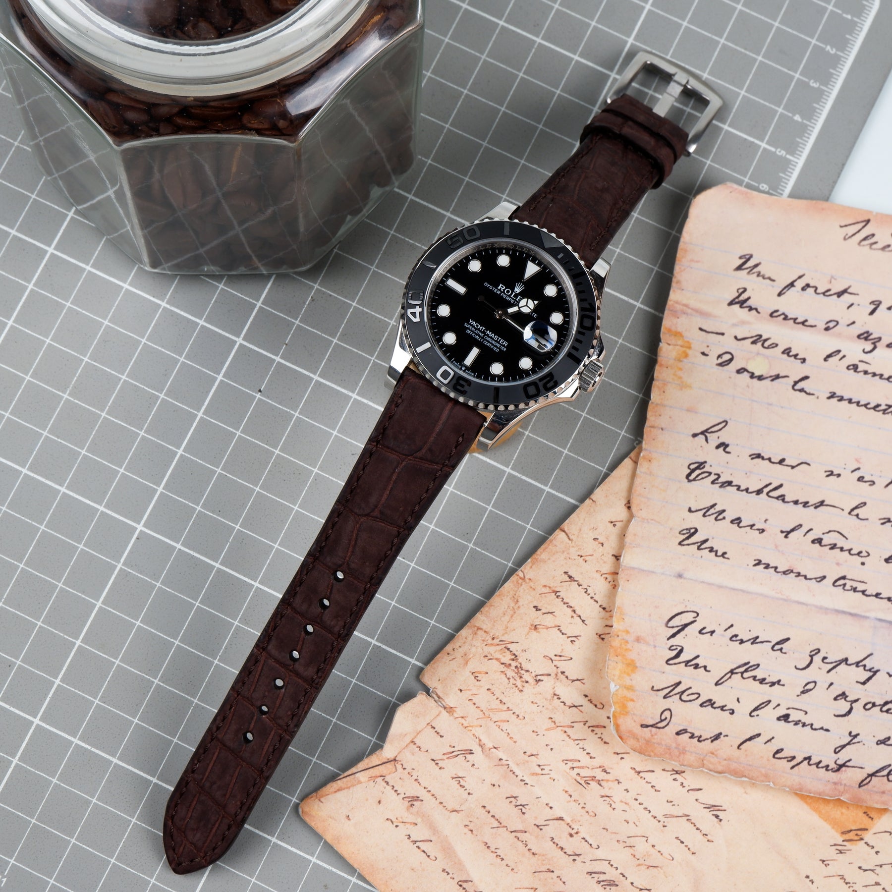 Rolex Yacht Master Straps - Croco Nubuck Tobacco