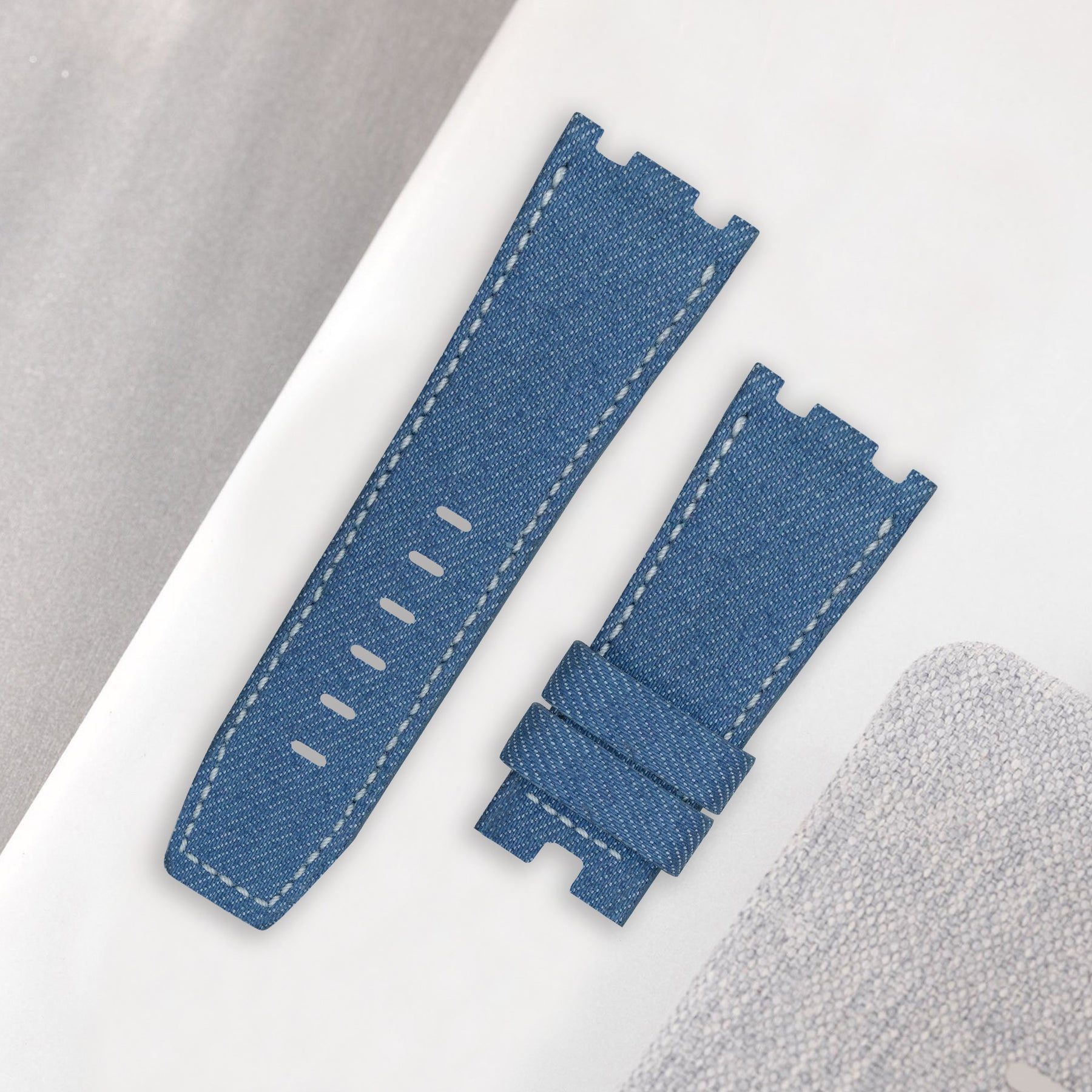 Japanese Denim Blue Haze brings contrast and clarity to your wrist. We use original Selvedge Denim from Japan’s most prestigious and renowned mills. It is woven on rare and slow antique looms to produce exceptional and fascinating textures for straps. Beyond its unique yarn combination, the denim's tight weave, stiff texture, pronounced twill lines and slightly coarse yarns create an exquisite surface structure and marbling effects with wear.