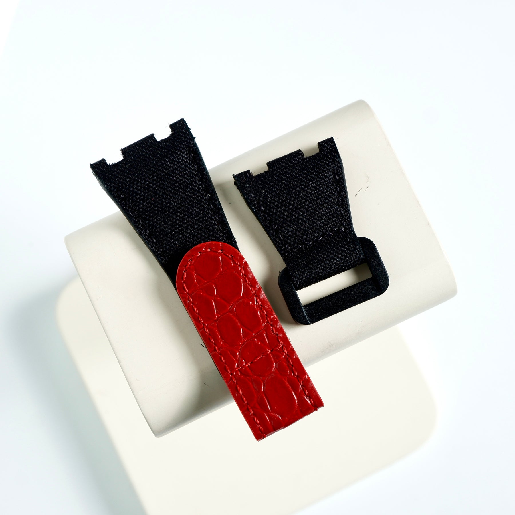 AP Roo 42mm Straps - AP Velcro Canvas Black X Croco Red