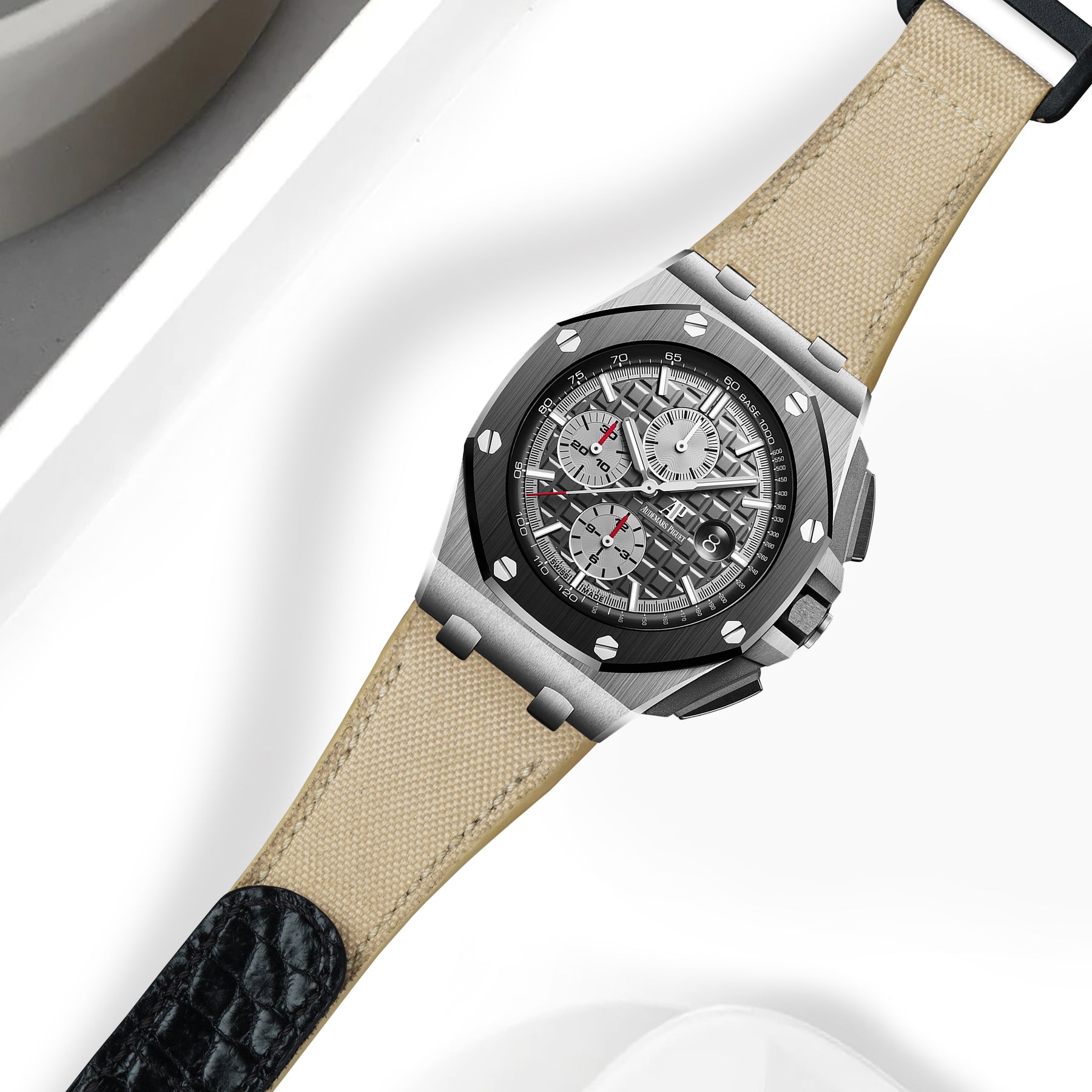 AP ROO 44mm Straps - AP Velcro Canvas Beige X Croco Black