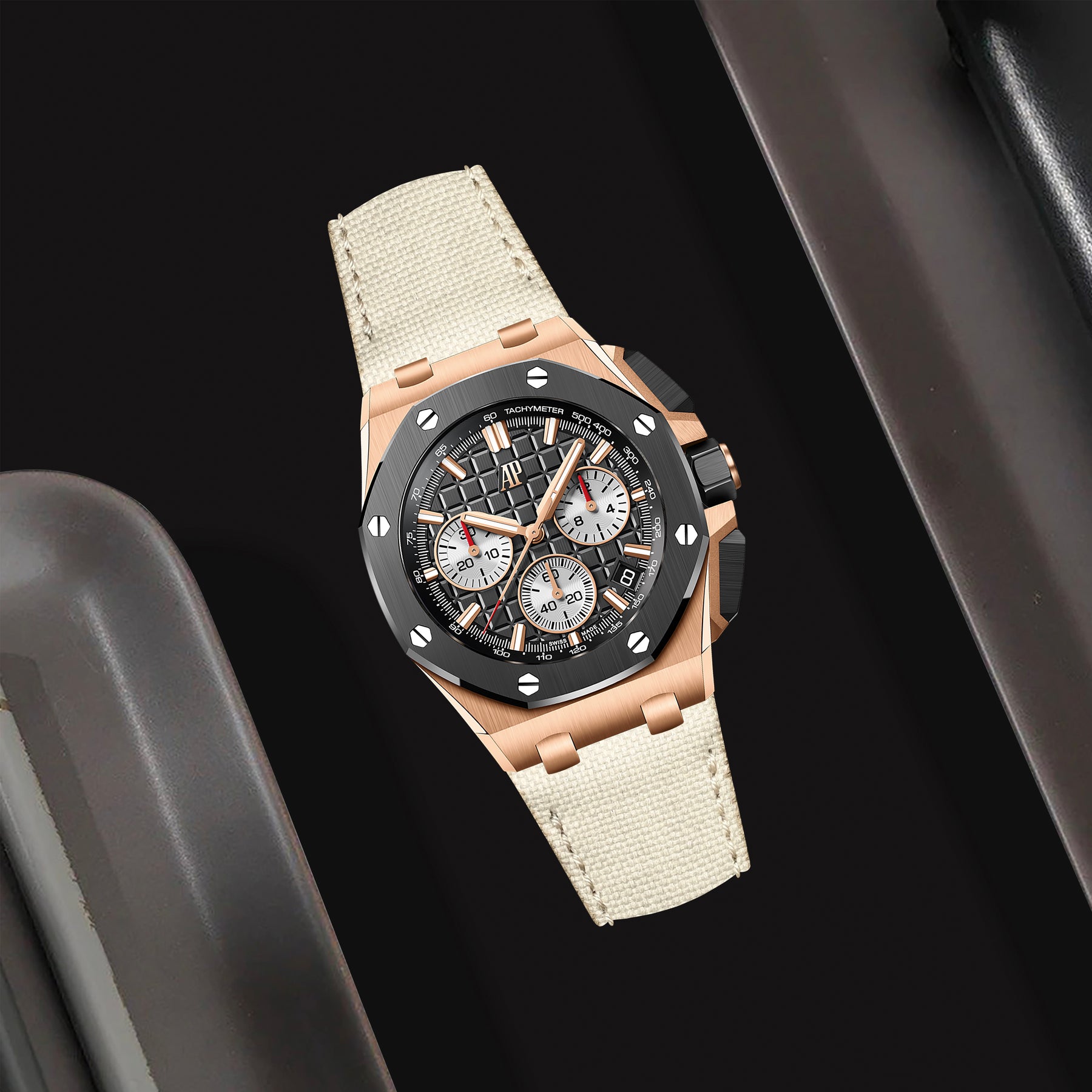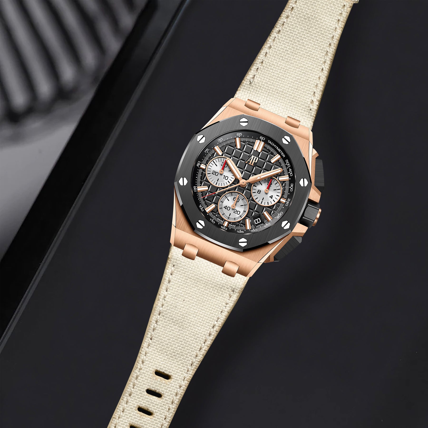 Our Canvas straps are for the explorer inside you. The new canvas watch straps are crafted from highly durable canvas material which is very resistant to water, stain and easy to clean. Perfect for year-round-wear, no matter your location ensuring that you'll experience extreme comfort from the moment you mount it on your wrist. Coming in a wide range of canvas colours material endowed with a new design of Audemars Piguet Royal Oak Offshore 43mm & 42mm.