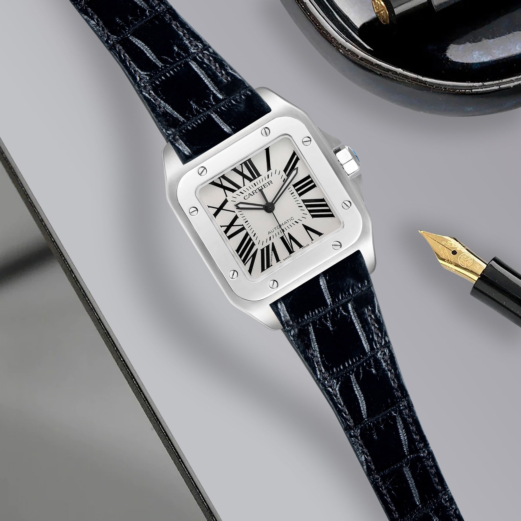 Cartier Santos 100 Straps - Croco Black