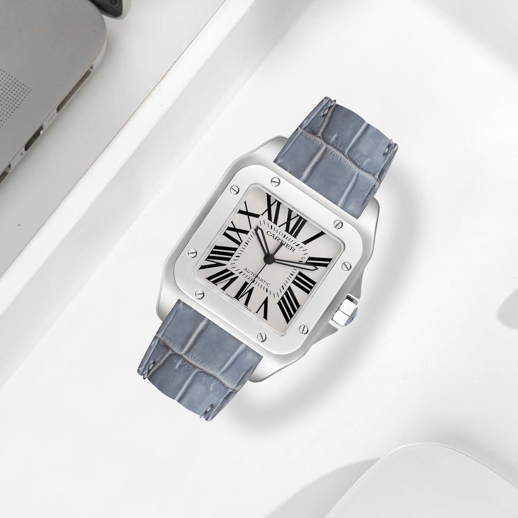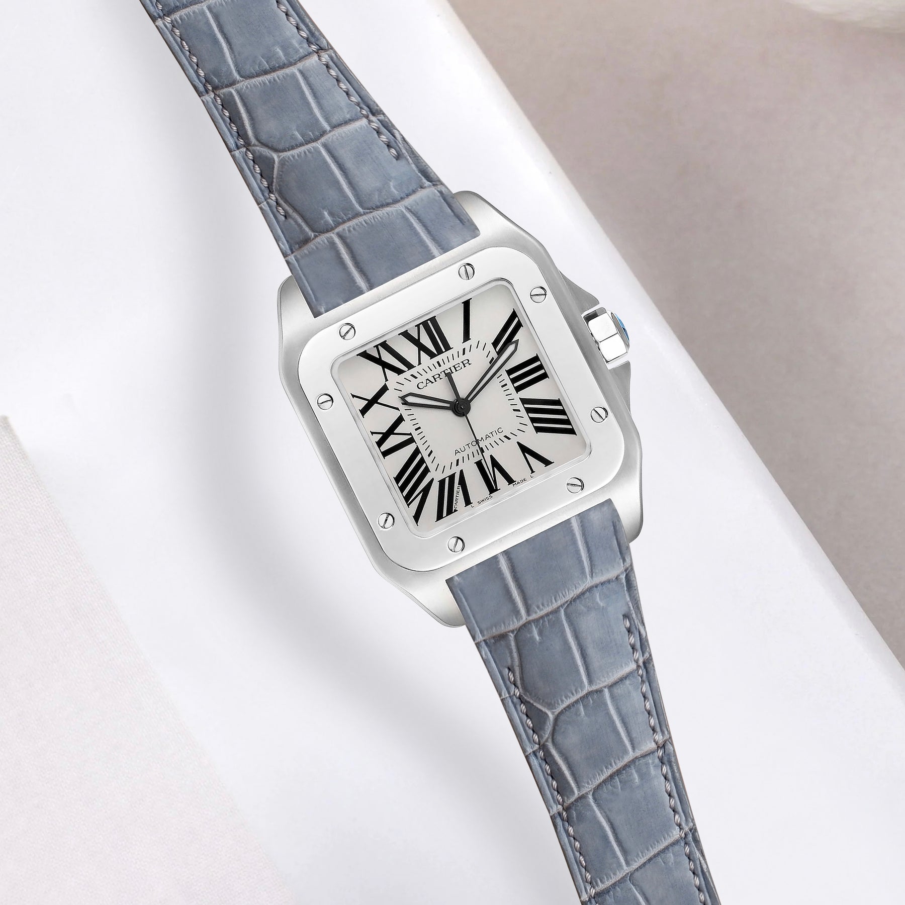 Cartier Santos 100 Straps - Croco Nubuck Grey