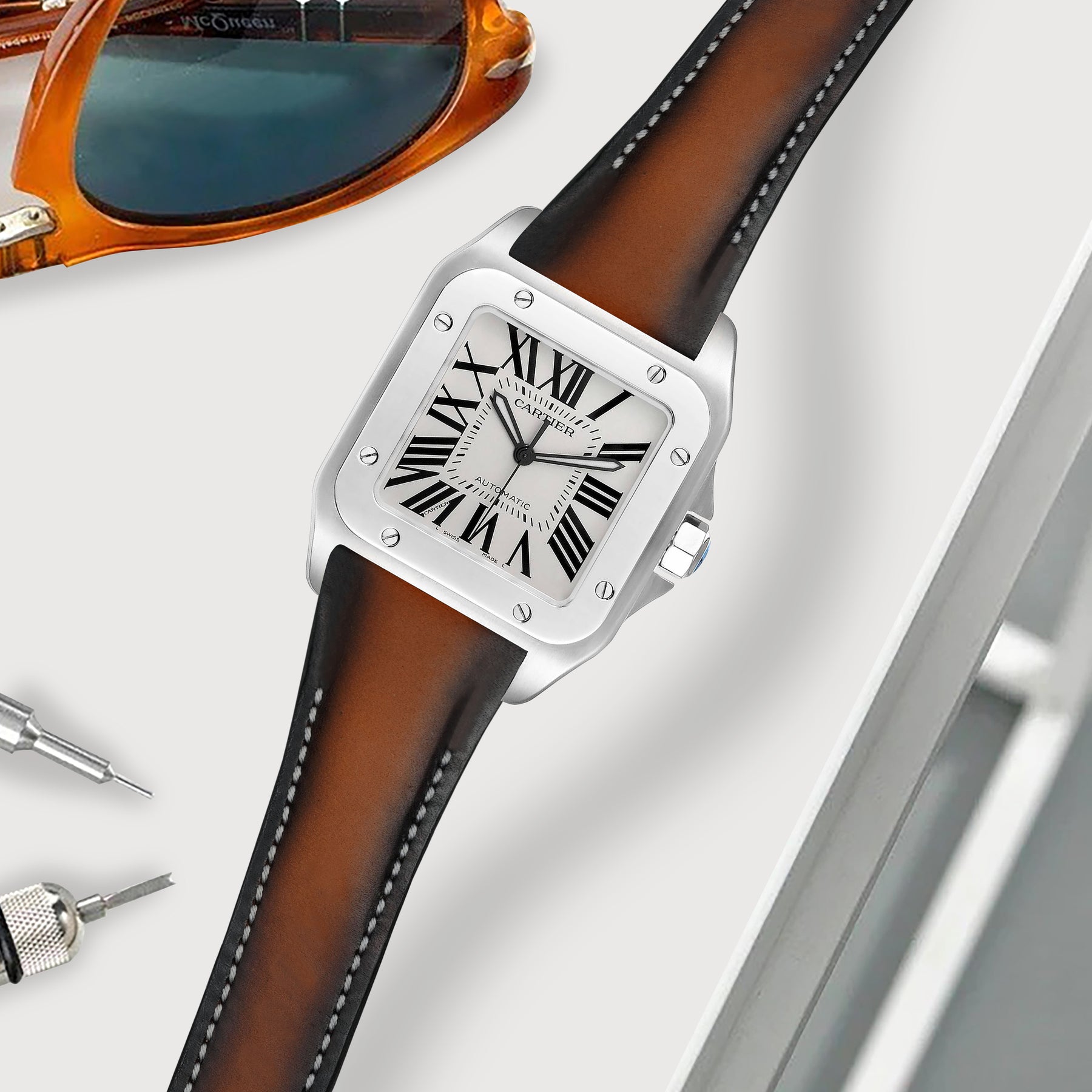 Each strap designed specifically to fit the OEM Cartier Santos 100 deployant clasp.