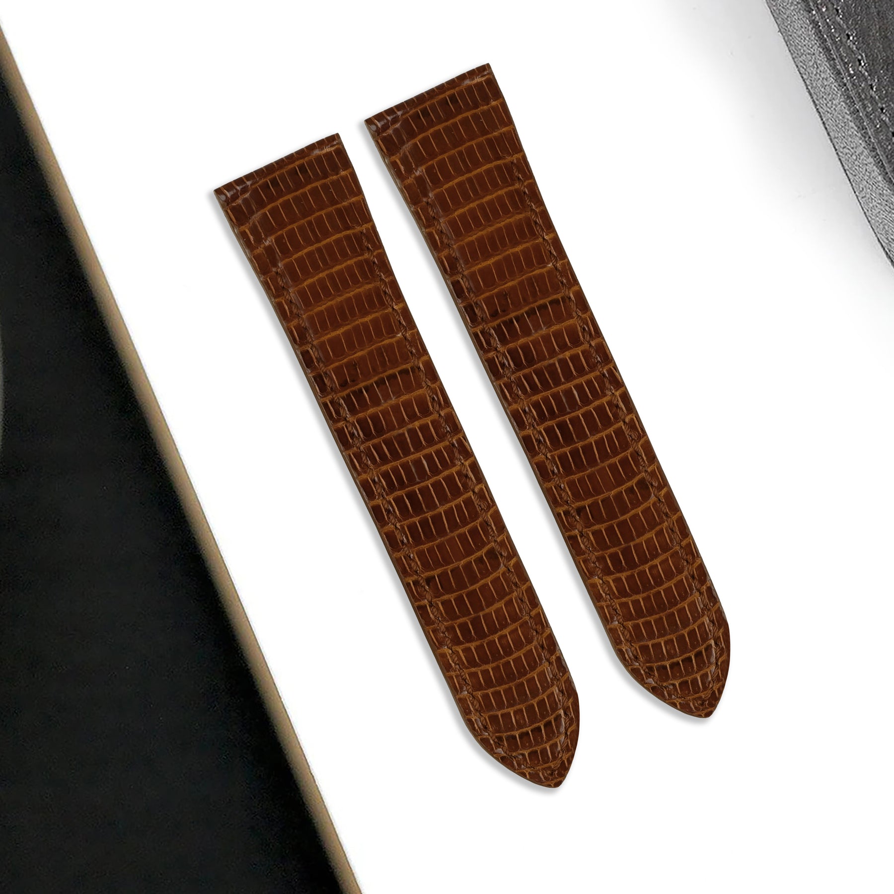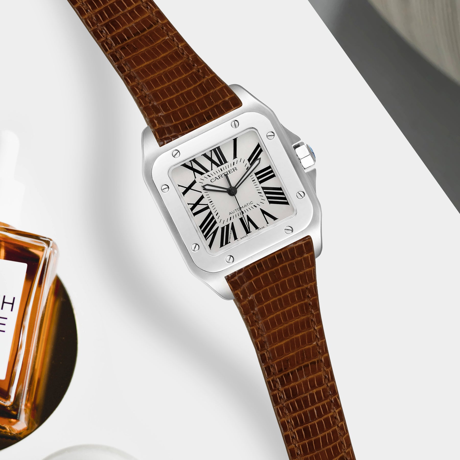 Description : Upgrade your Cartier Santos 100 with a perfectly fitting custom strap, combining versatility, quality, and classic appeal for a refined and polished look. Now, you can take advantage of all the leather options such like Lizard strap, offering a perfect balance of elegance and comfort. Guaranteed to fit both Cartier Santos 100 Medium (20mm), XL Classic (23mm) and XL Chronograph (24mm) models.