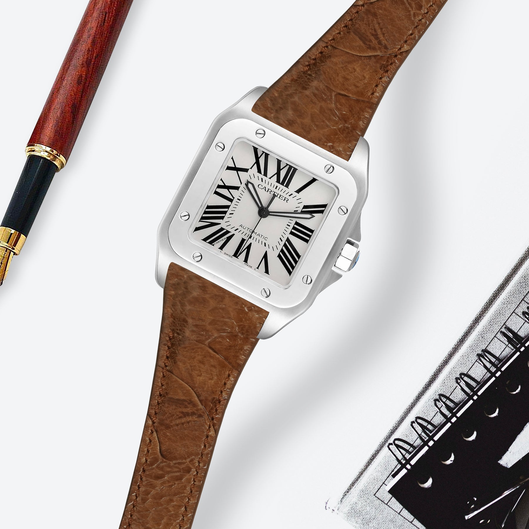 Cartier Santos 100 Straps - Ostrich Leg Brown