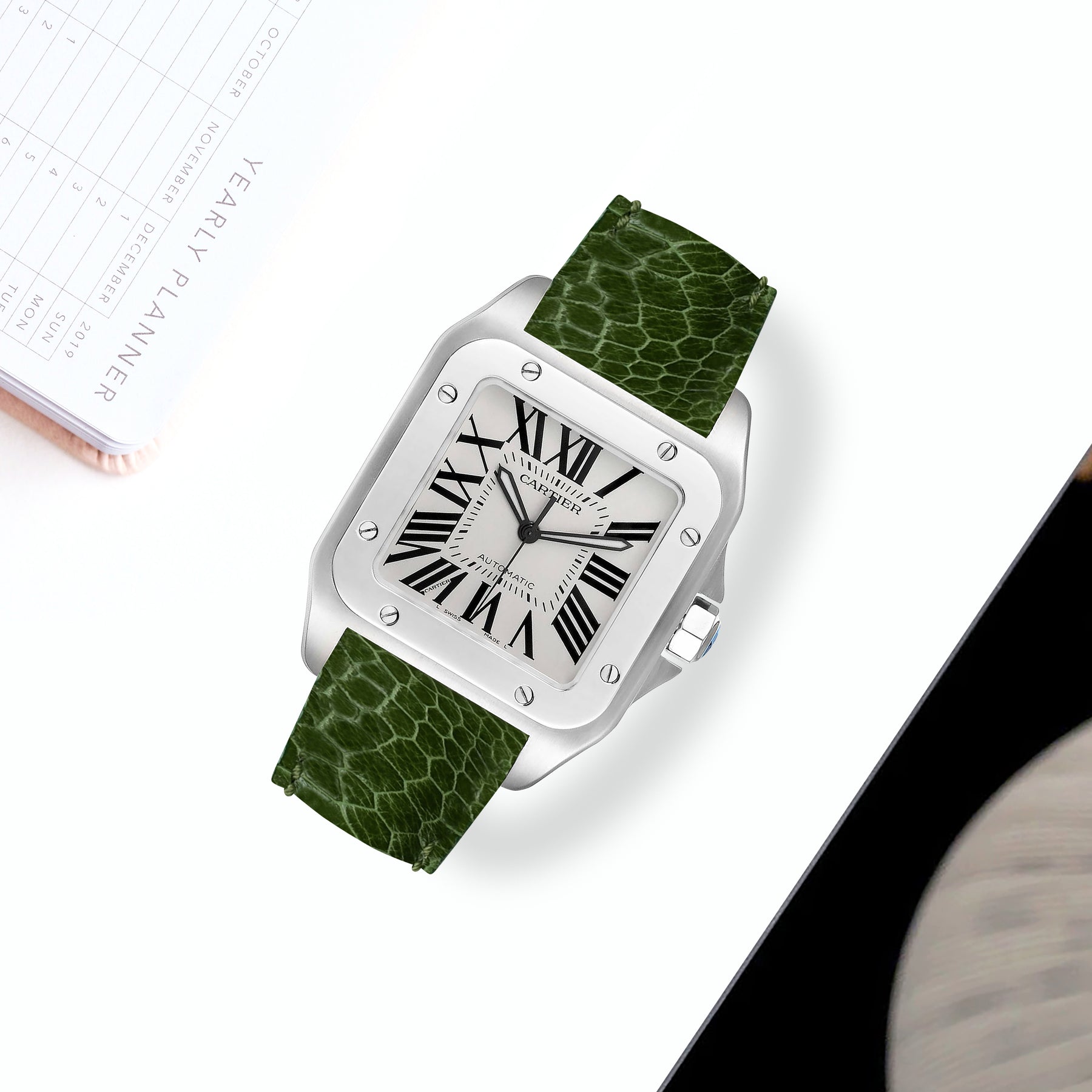 Cartier Santos 100 Straps - Ostrich Leg Cactus Green
