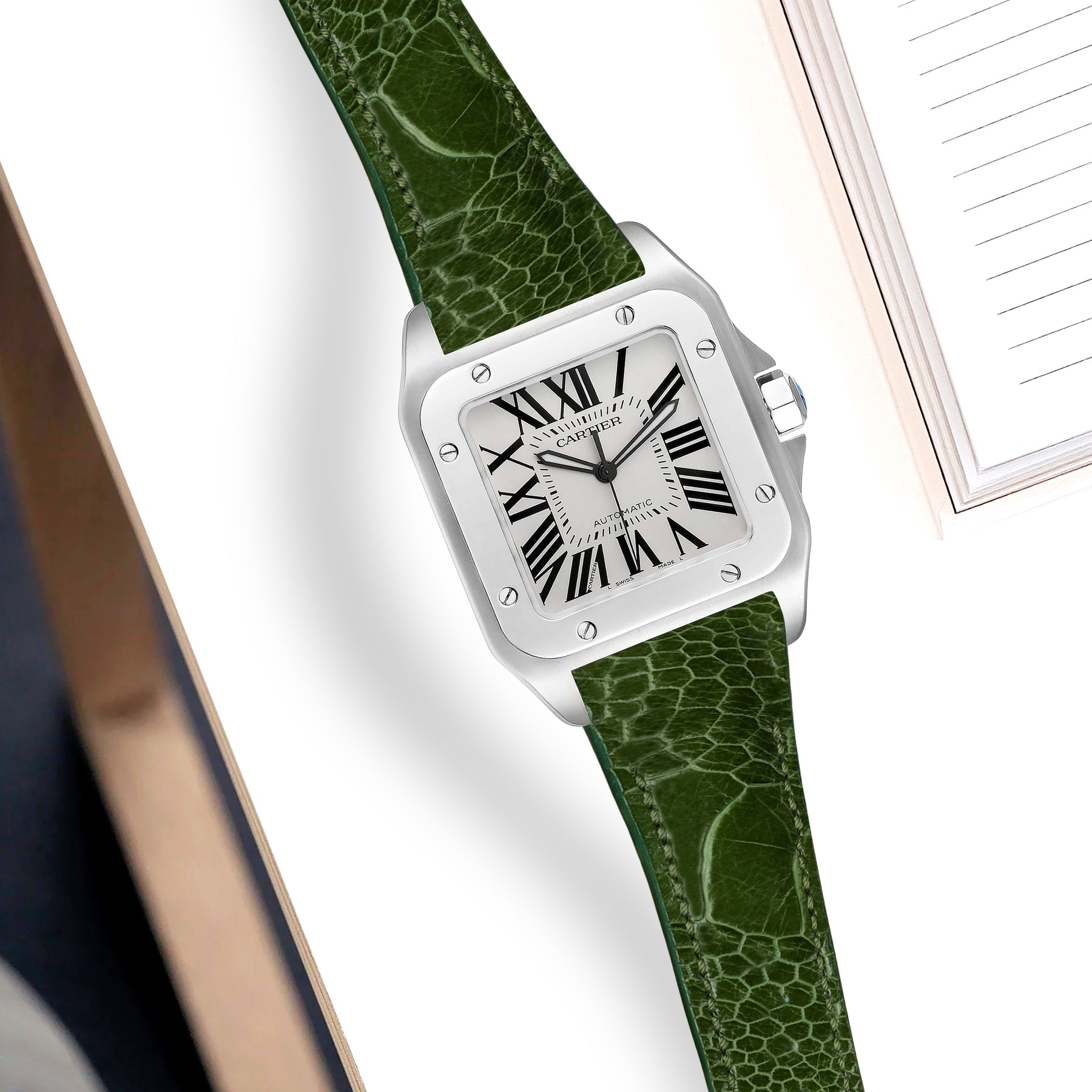 Each straps designed specifically to fit the OEM Cartier Santos 100 deployant clasp.