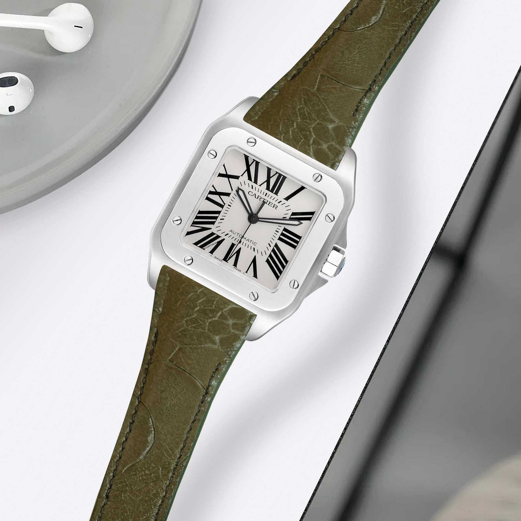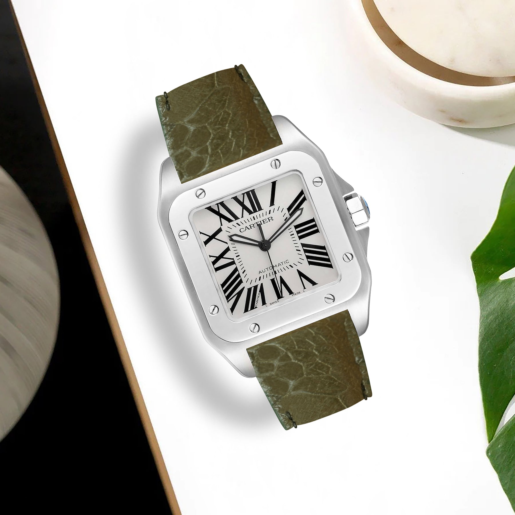 Cartier Santos 100 Straps - Ostrich Leg Olive