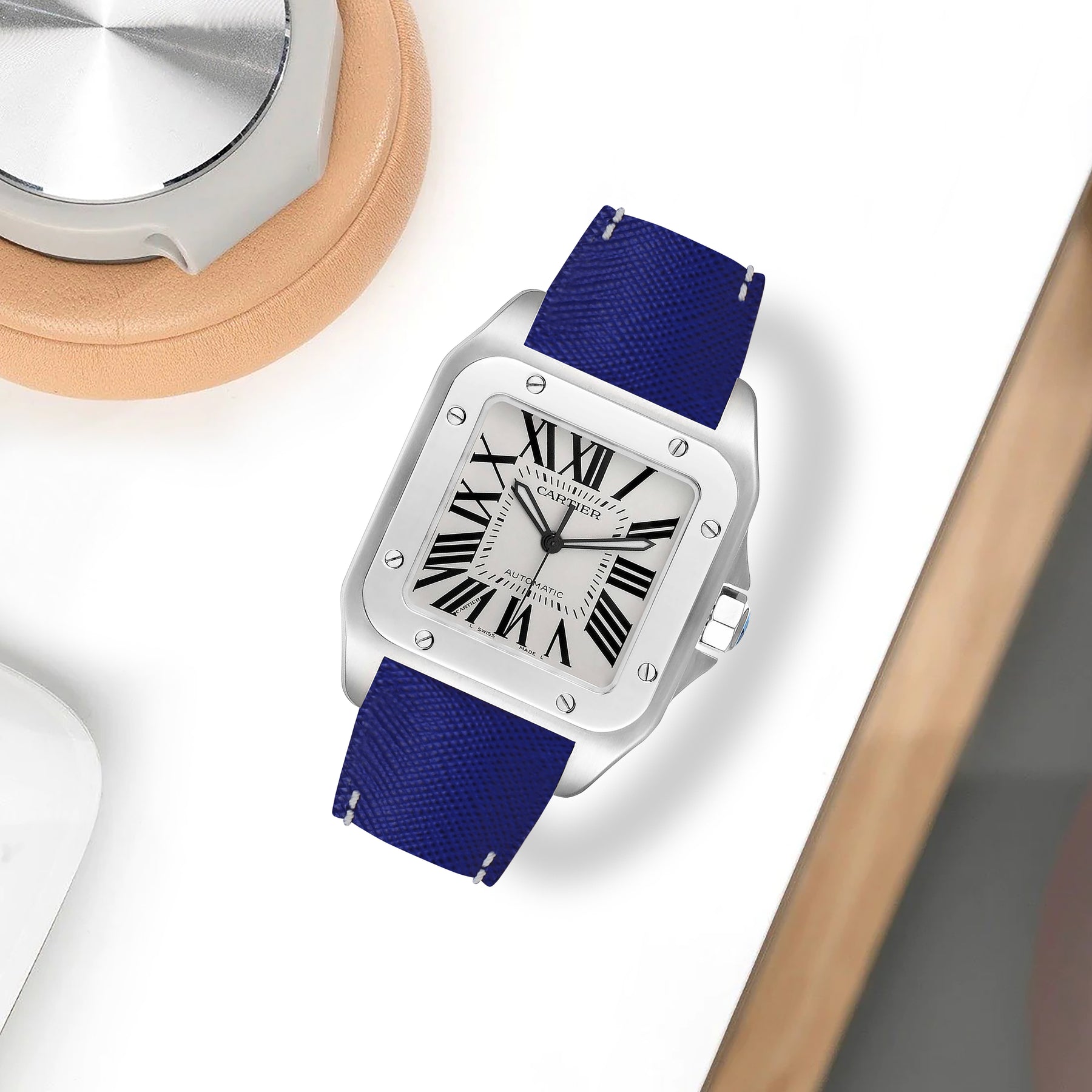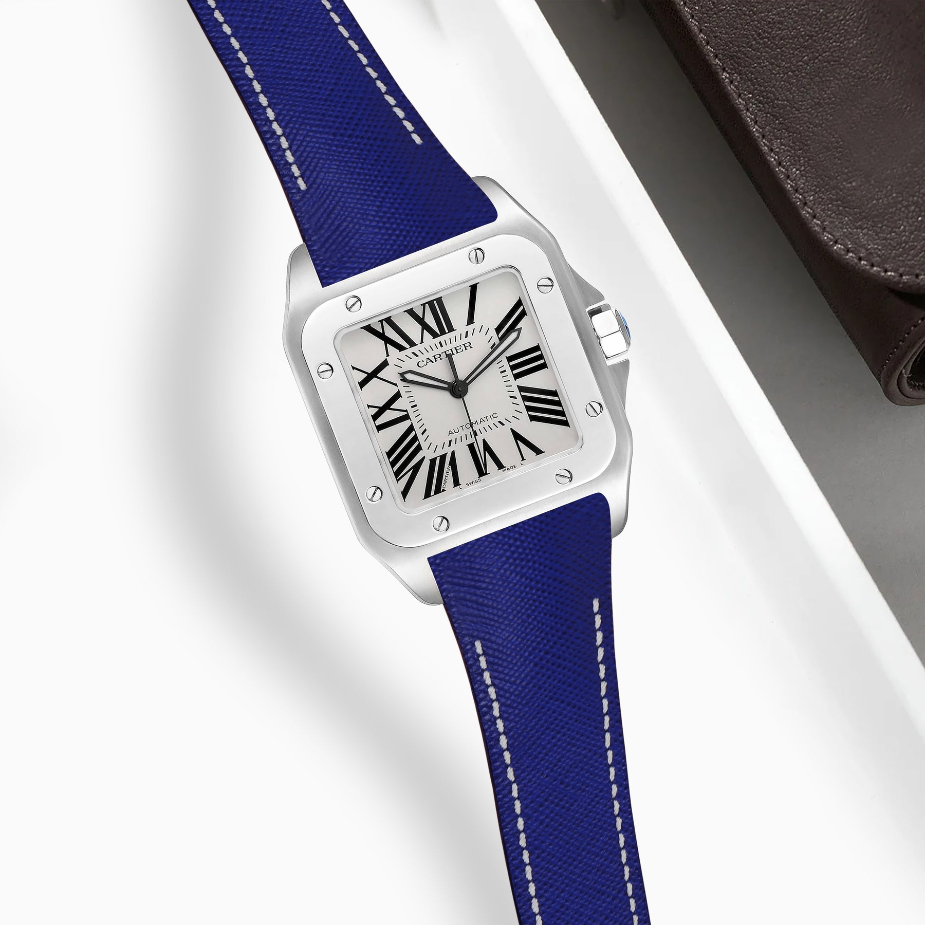 Coming in a wide range of saffiano leather colours material for Cartier Santos 100, you can choose the one that best suits your watch and outfit.