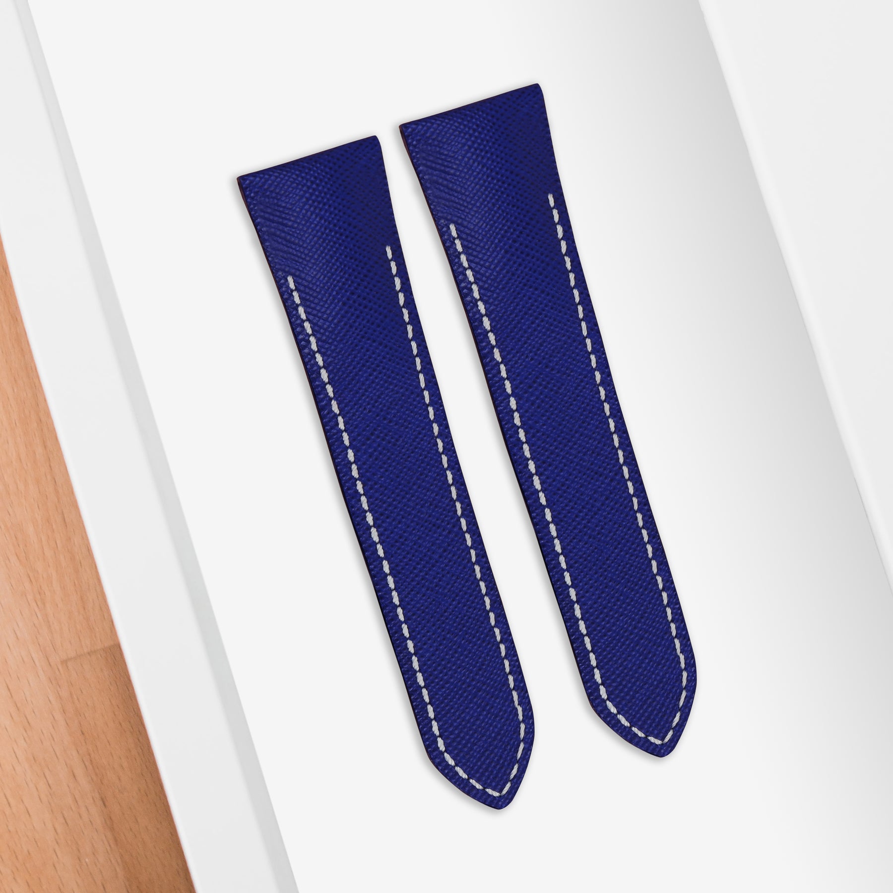 If you want a strap that has a beautiful texture, good scratch and water resistance, and remains looking pristine even after many wear, Saffiano is the right choice. Saffiano leather is a full grain calf skin, it has a very distinct crosshatch grain that was designed, developed and patented by Mario Prada in 1913. The pattern is created by embossing a cross-hatch pattern on wax laying with the surface of the calfskin, granting it high levels of scratch and water resistance. Each strap designed specifically to fit the OEM Cartier Santos 100 deployant clasp.