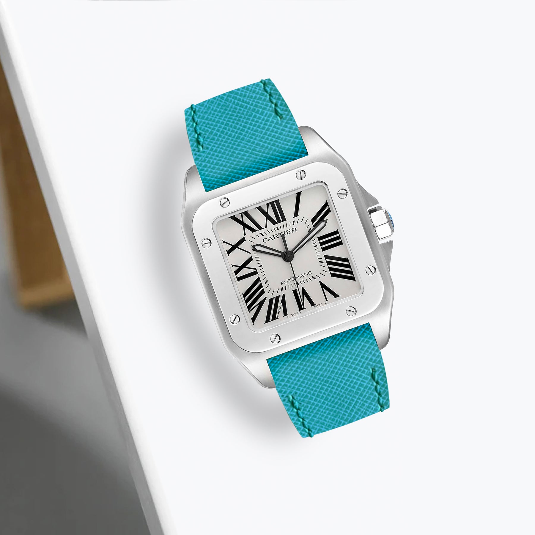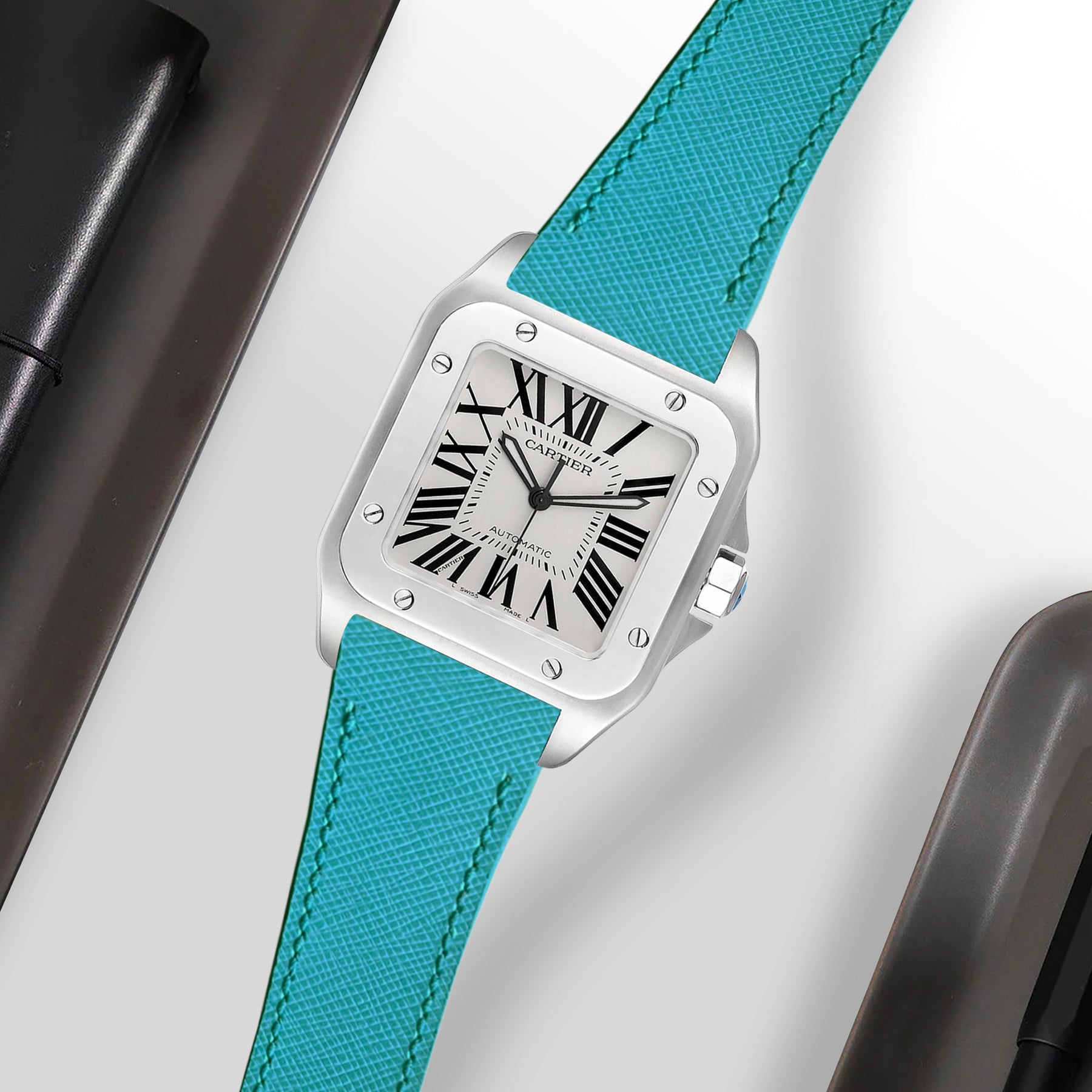 Coming in a wide range of saffiano leather colours material for Cartier Santos 100, you can choose the one that best suits your watch and outfit.