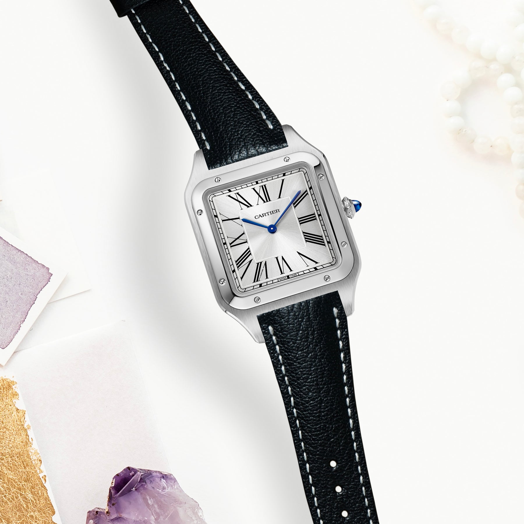 Add a sophisticated splash of color to your Santos Dumont with Chevre leather in classic, bright and zesty tones. A smooth surface and a slight gloss immediately imparts luxuriousness to products made with this leather. Not only a feast for the eyes, chevre is also strongly water and scratch-resistant, and is a great option for daily wear watch straps. Coming in a wide range of chevre leather colours material for Cartier Santos Dumont, you can choose the one that best suits your watch and outfit.