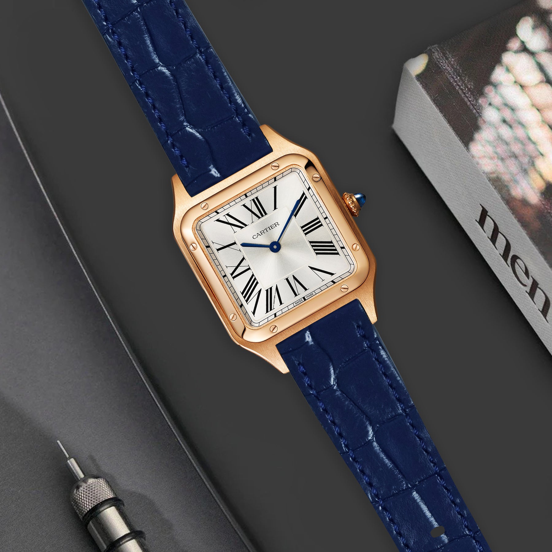 This classy Croco leather strap with a fine glossy texture is made from the top quality croco skin. Made from the very best skin and worn for those very special occasions features with a metal adapter to provide a flush fit with the Cartier Santos-Dumont and comes with a quick release spring bar. Coming in a wide range of croco leather colours material for Cartier Santos-Dumont, you can choose the one that best suits your watch and outfit.