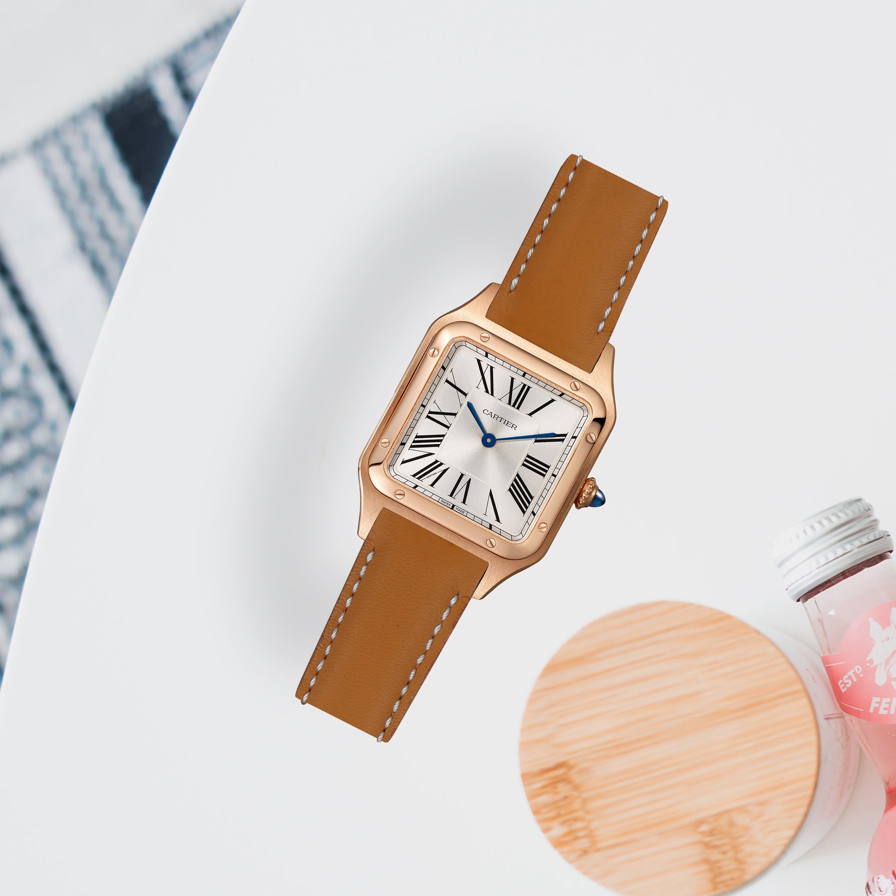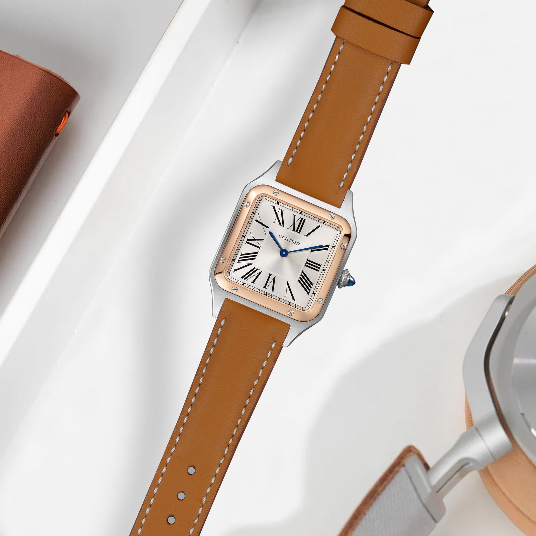 Description : Introducing the new addition to the Cartier Santos-Dumont collection. Rhone leather watch strap designed exclusively for Santos Dumont feature Quick-switch system using the same metal adapters and comes with a quick release spring bar to provide a flush fit for the Cartier Santos-Dumont without any lug overhang. Unlike the Santos line-up, this collection was made to only fit straps, not bracelets. With its slim case and classy look, it was a very dressy watch that worked well on a range of straps.