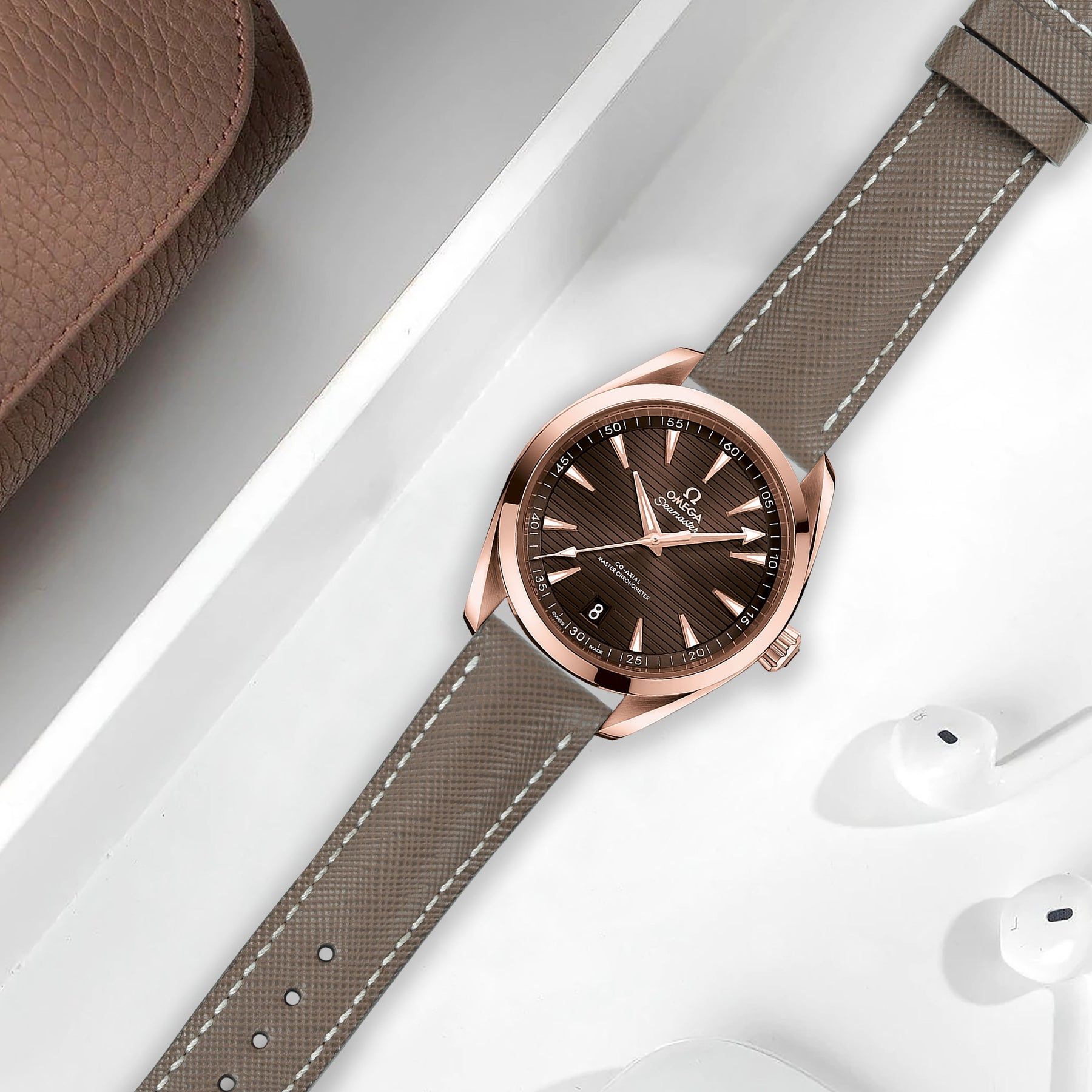 Omega Seamaster Aqua Terra Straps - Saffiano Taupe