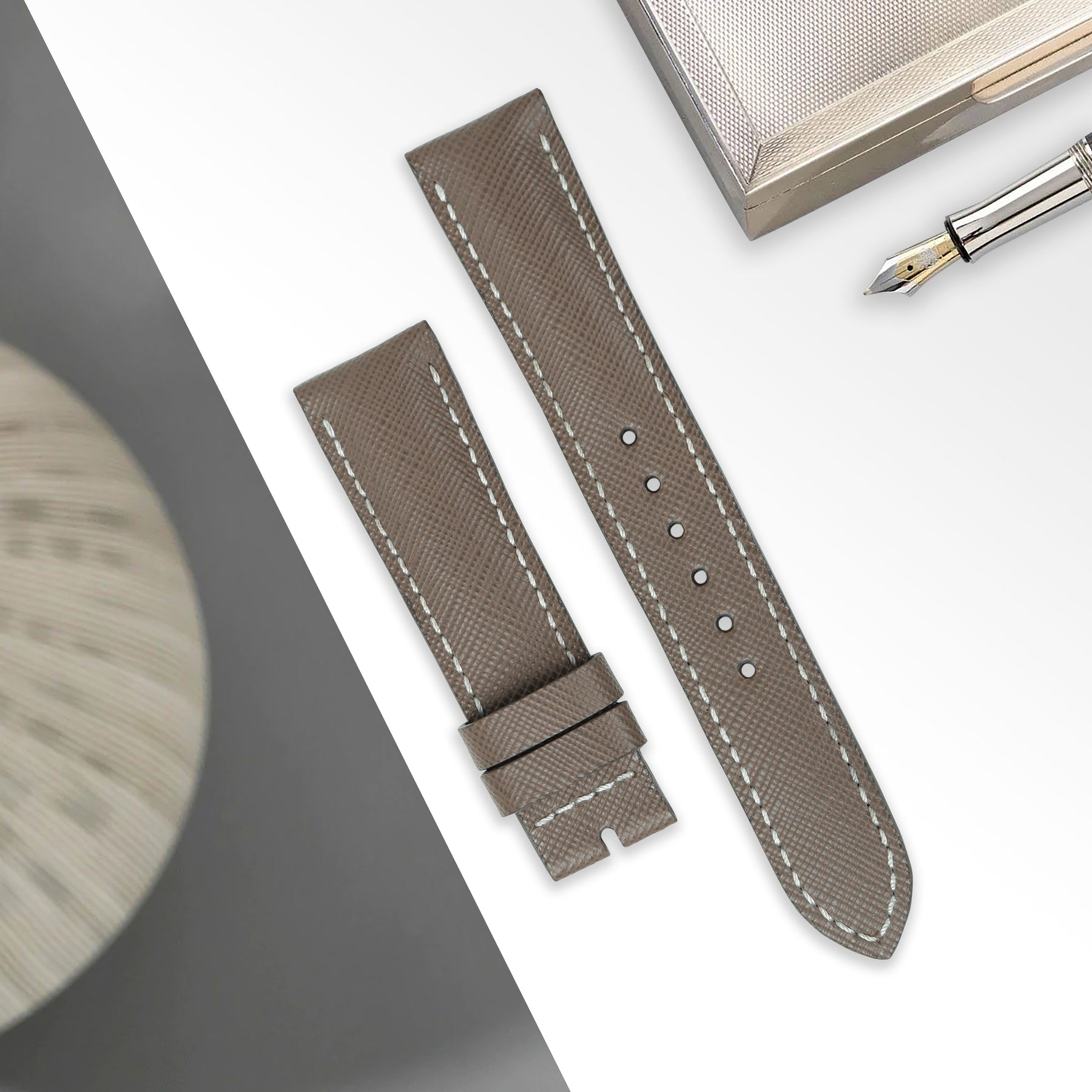 Our Taupe Saffiano is the one strap for all your needs. The watch strap deals well with water, scratches and is also easy to care for and can be cleaned with a simple wipe using a damp cloth.