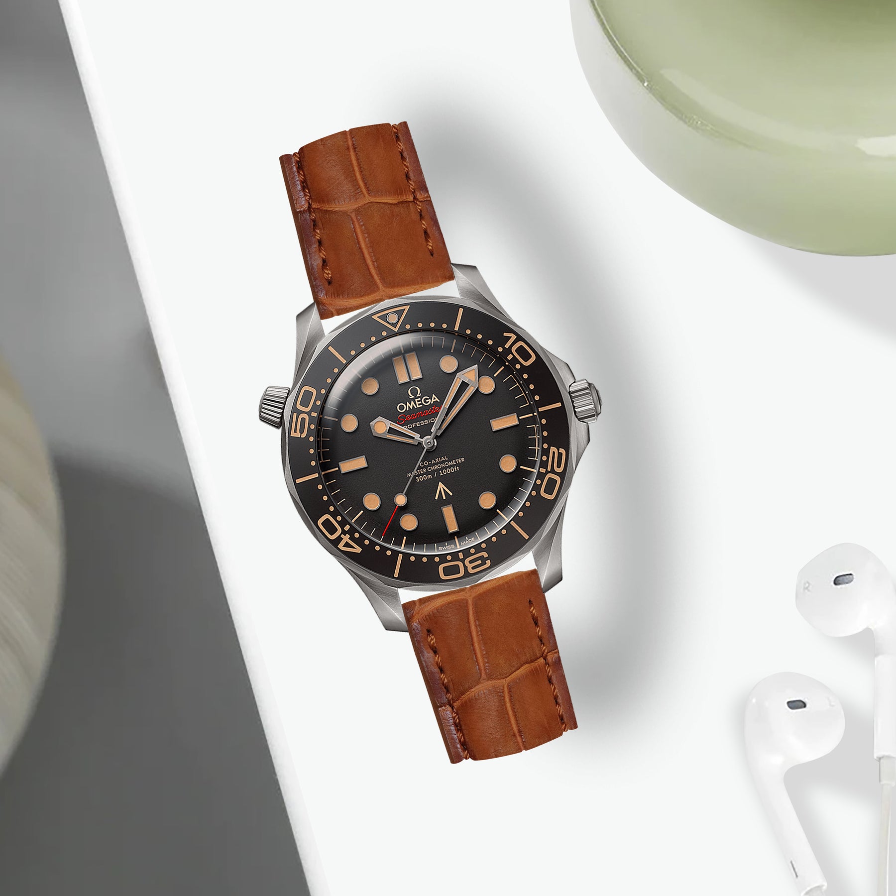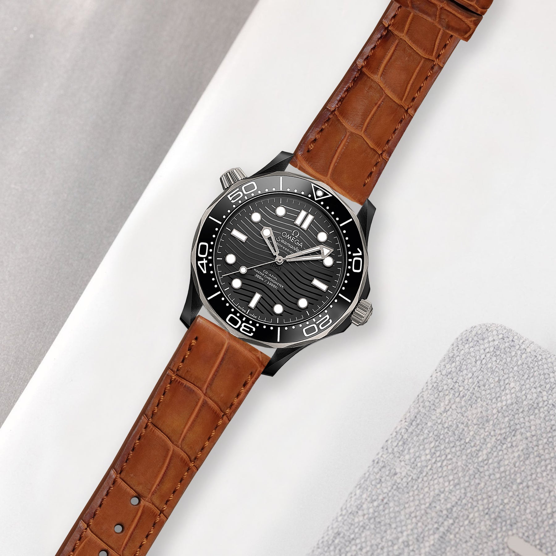 Omega Seamaster Diver 300M Straps - Croco Nubuck Caramel