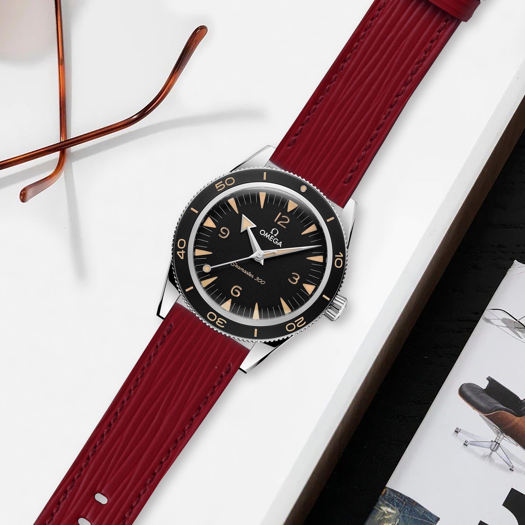 Omega Seamaster Heritage Straps - Epi Maroon