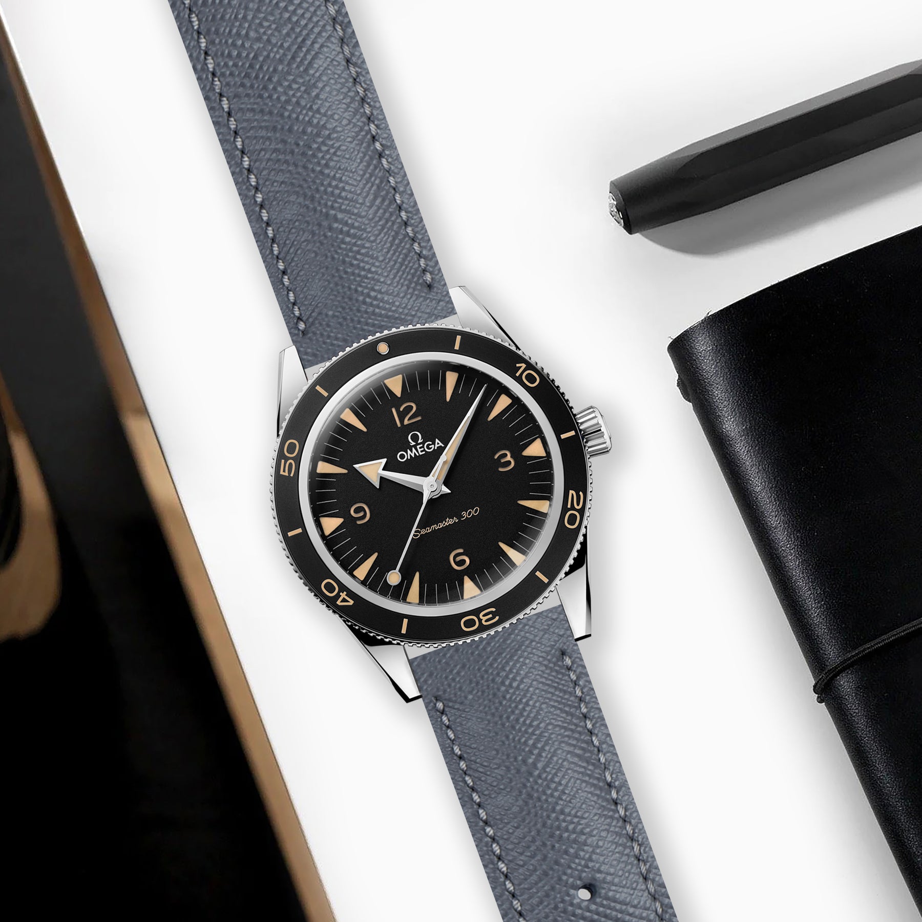 Omega Seamaster Heritage Straps - Saffiano Dark Grey