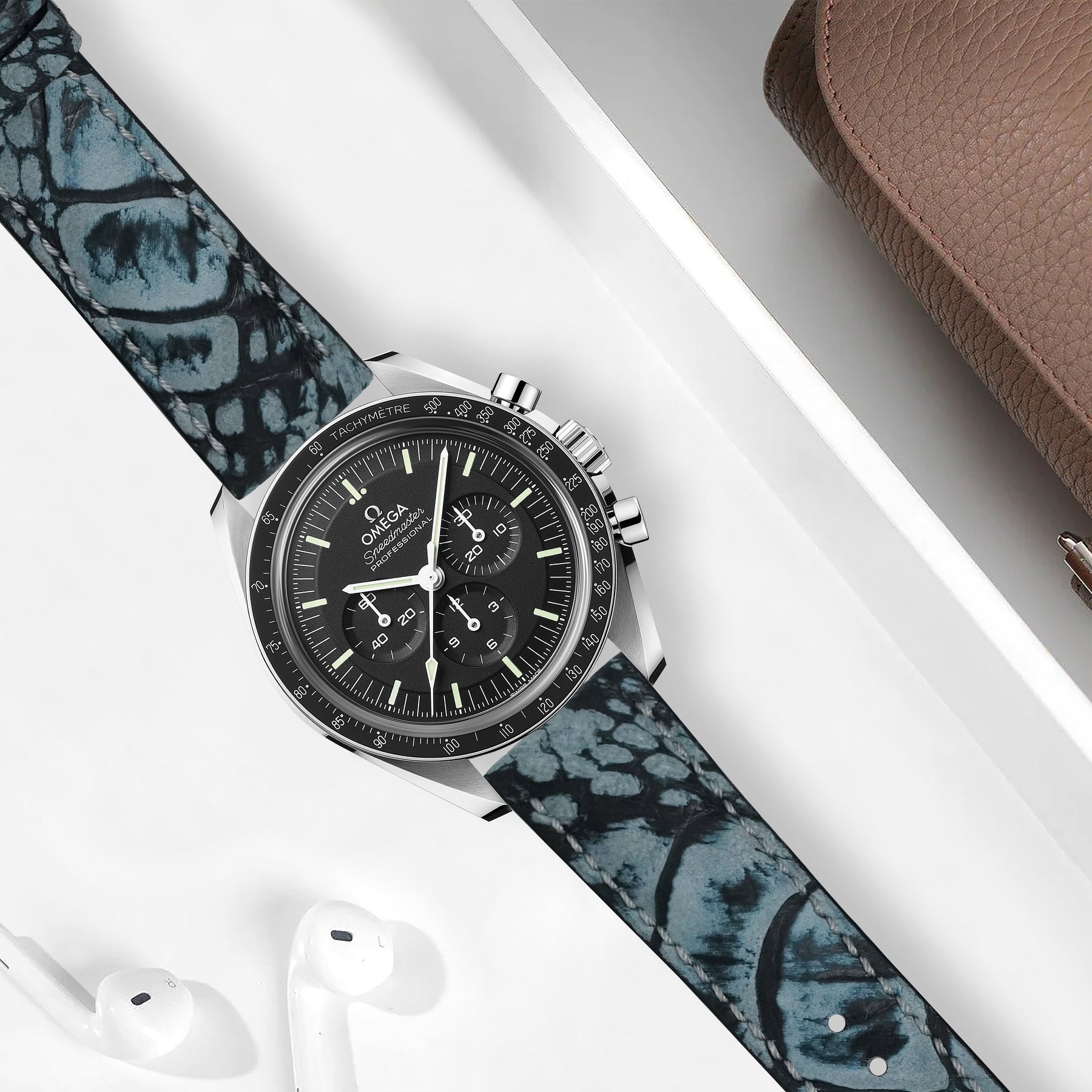 Omega Speedmaster Moonwatch Straps - Ostrich Leg Stone Blue