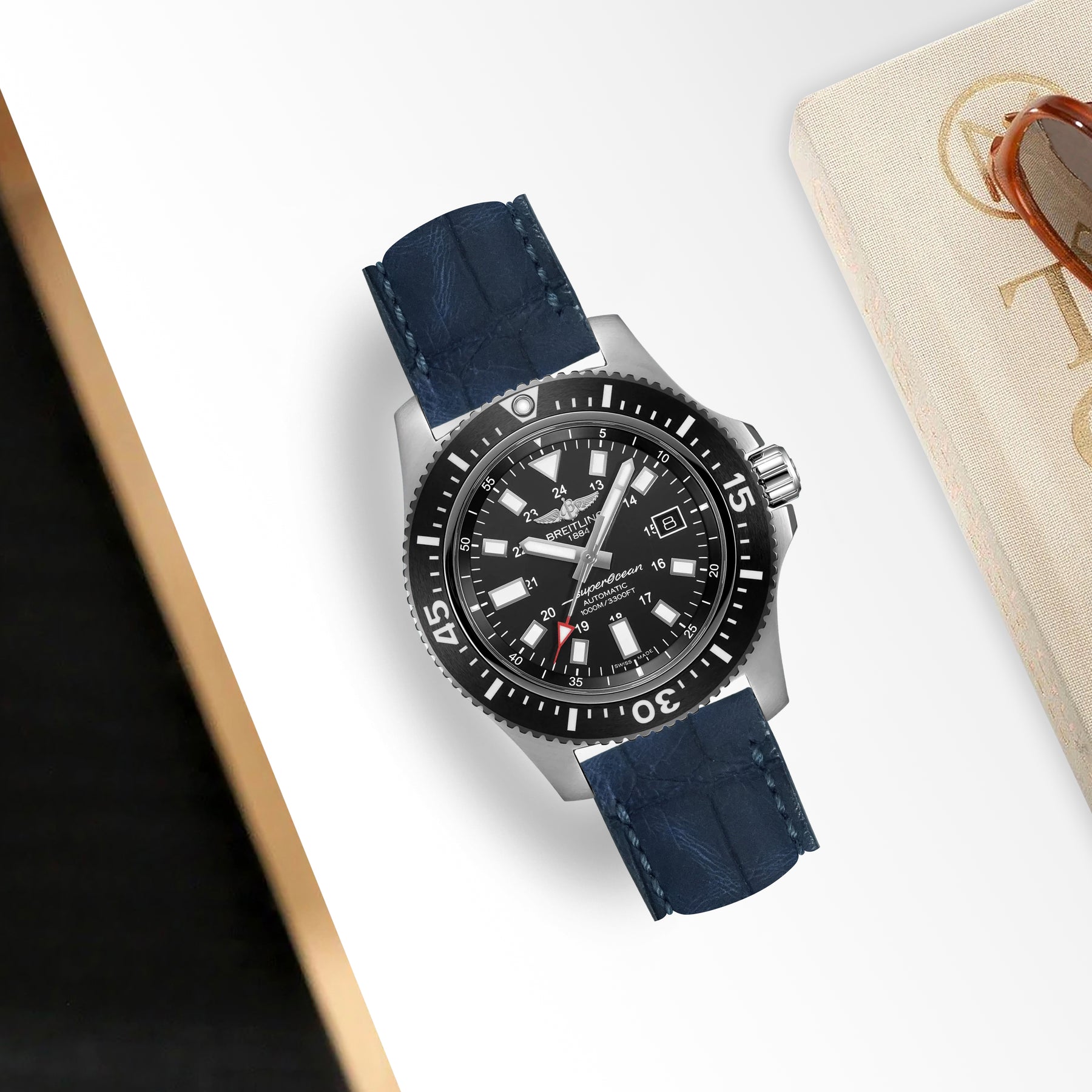 Breitling Super Ocean Straps - Croco Nubuck Abysse