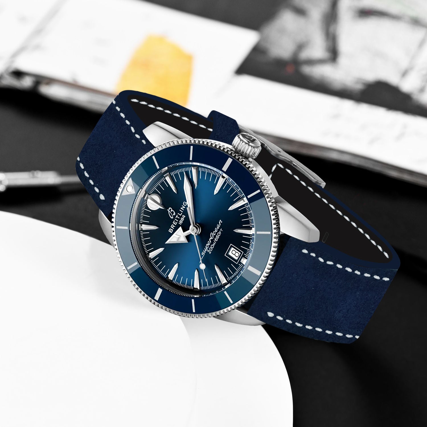 Breitling Super Ocean Heritage Straps - Suede Navy Blue