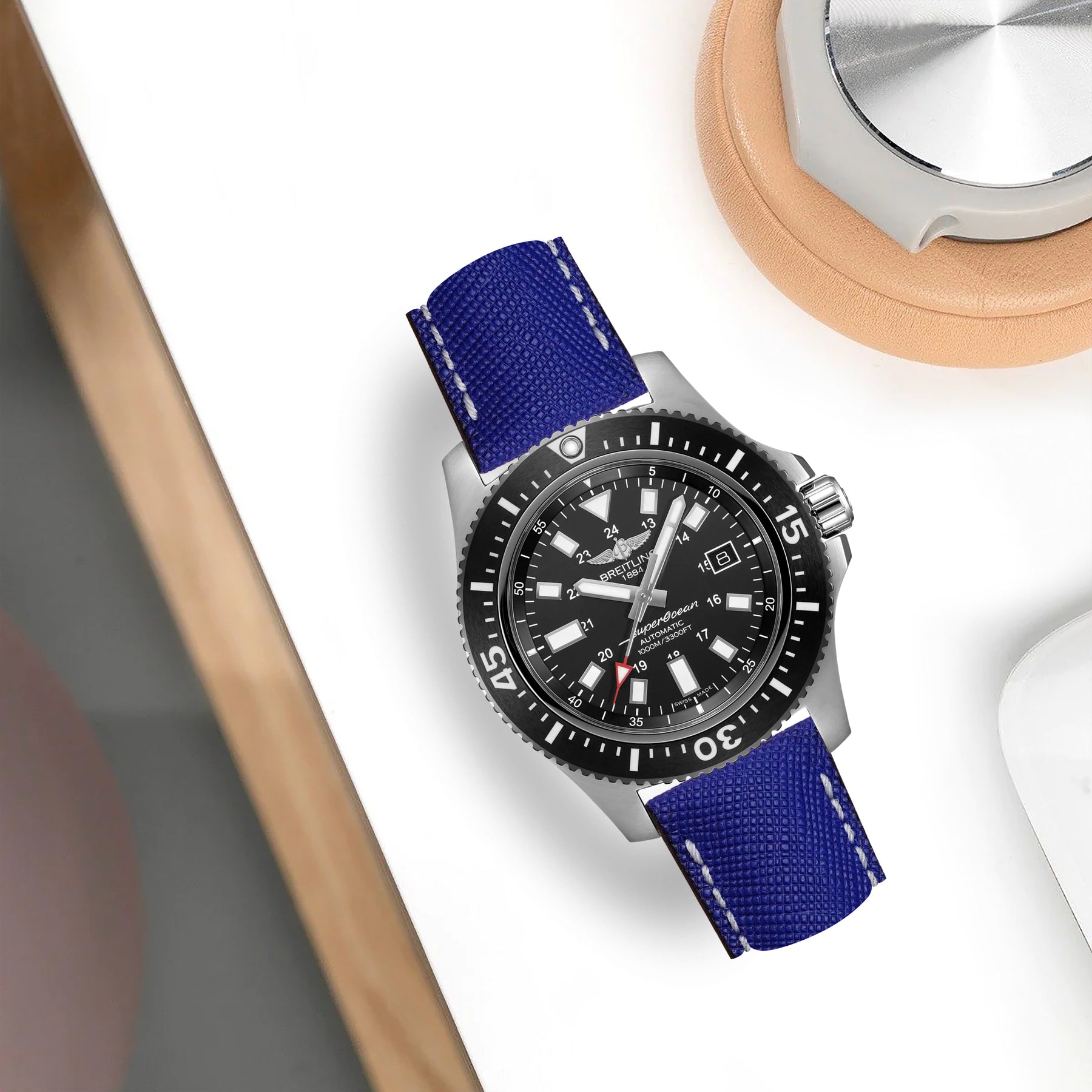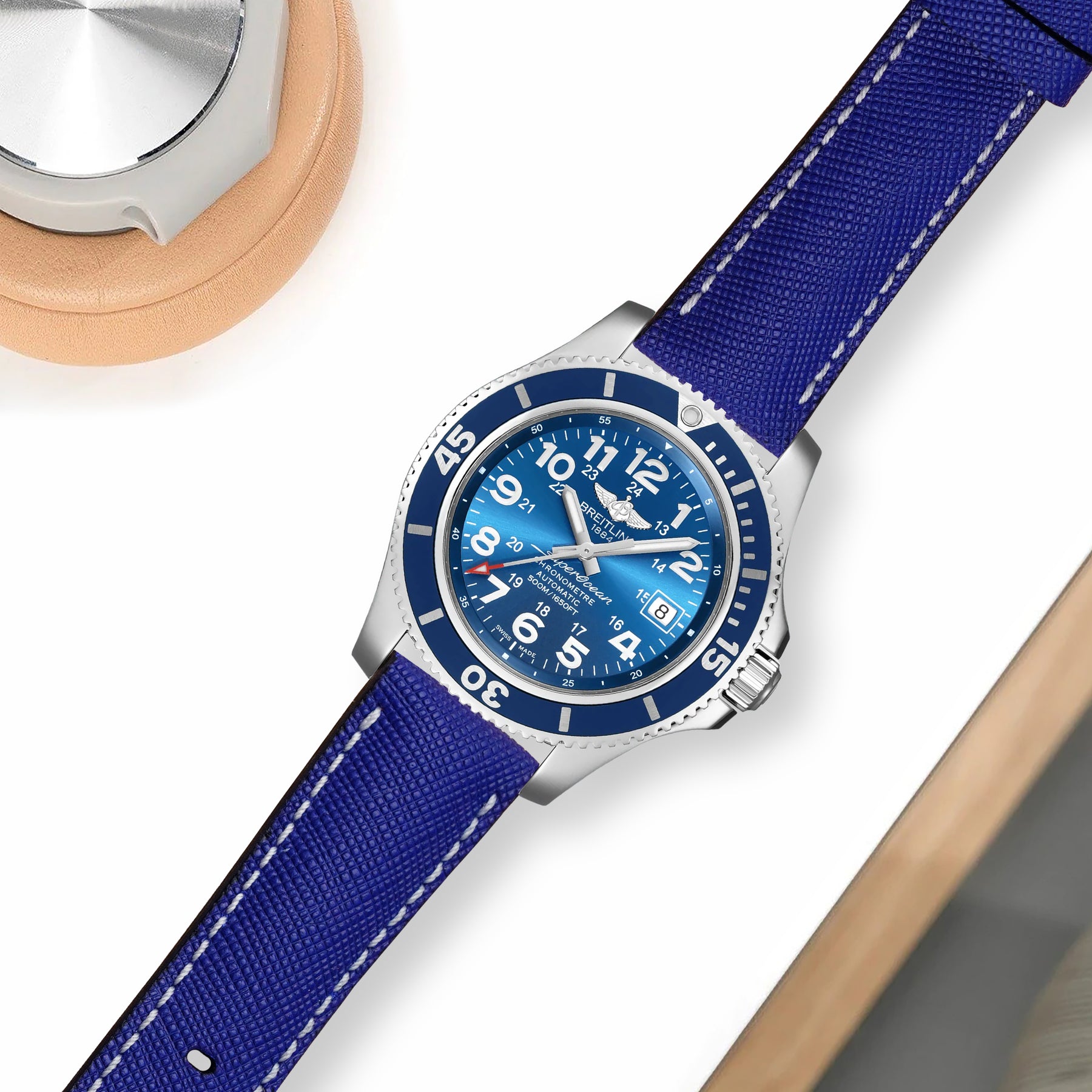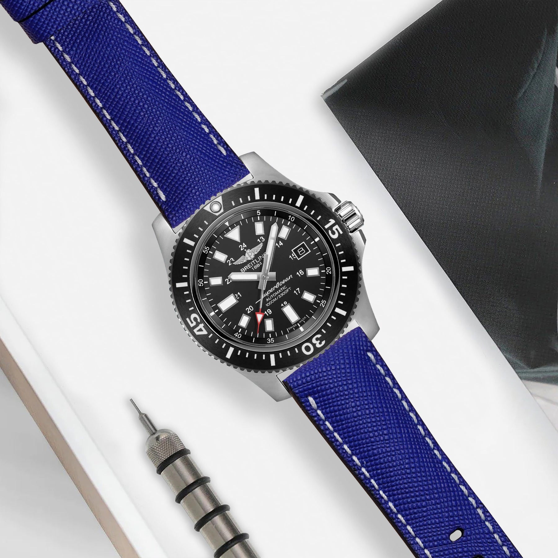 Breitling Super Ocean Straps - Saffiano Electric Blue