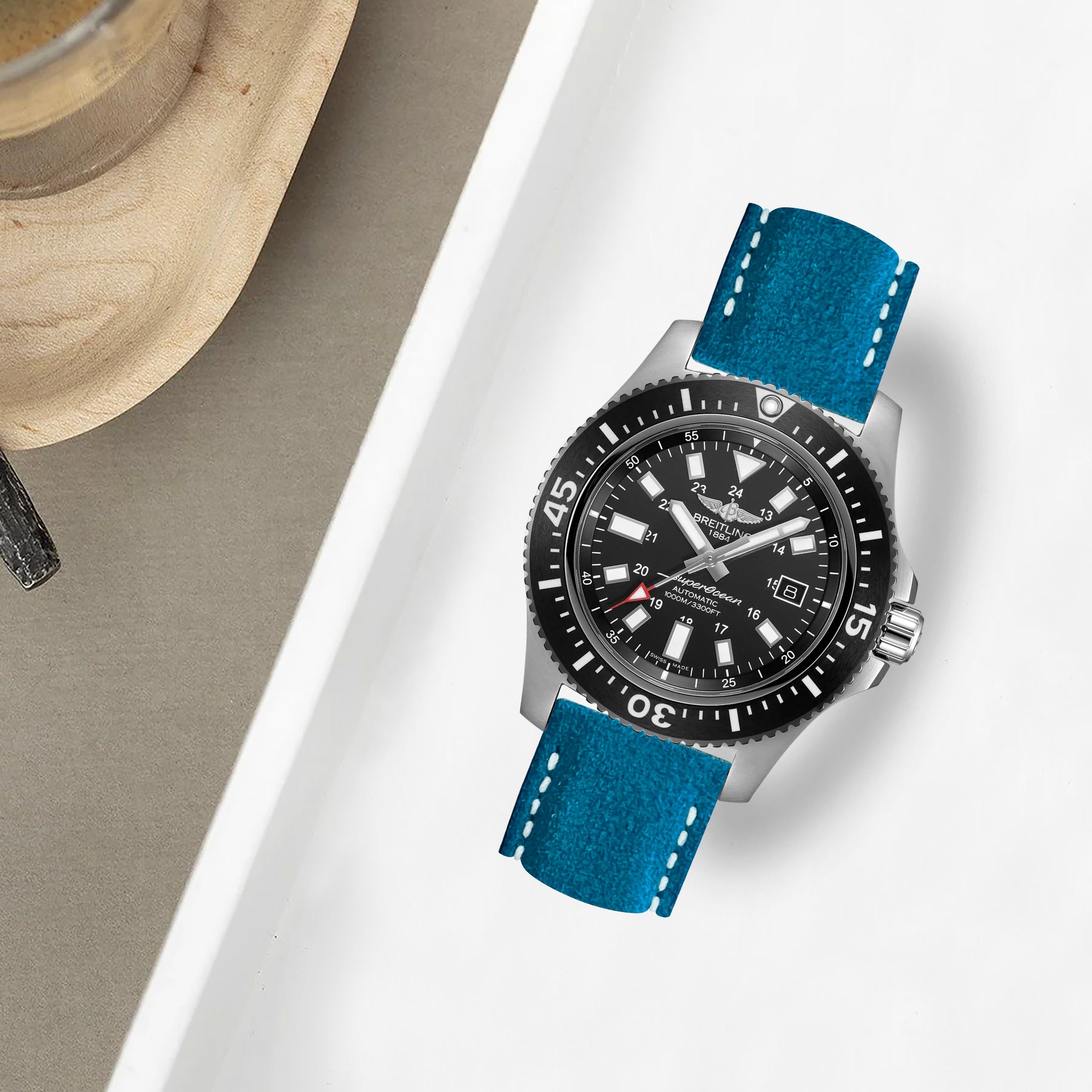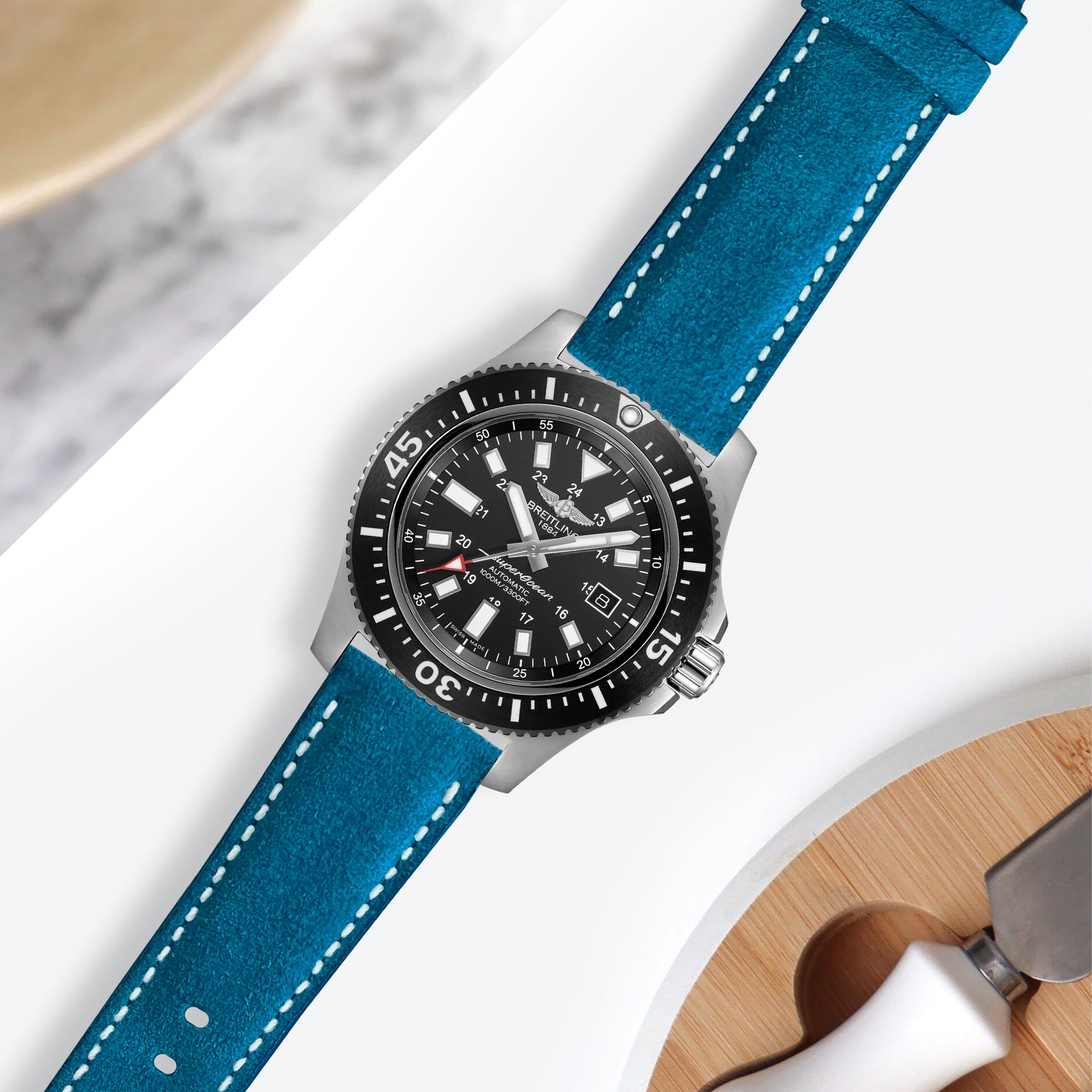 Breitling Super Ocean Straps - Suede Cyan Blue