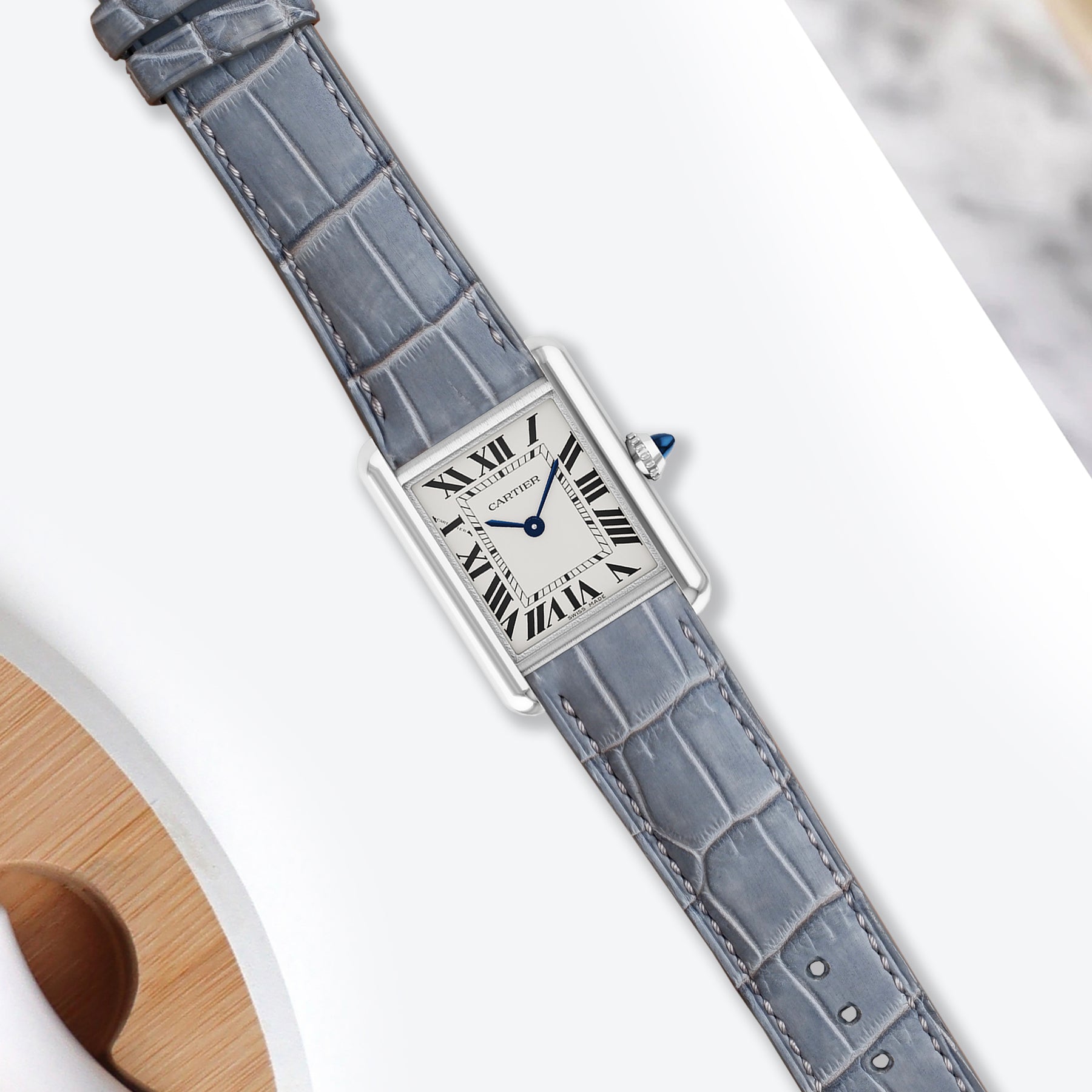 Cartier Tank Straps - Croco Nubuck Grey