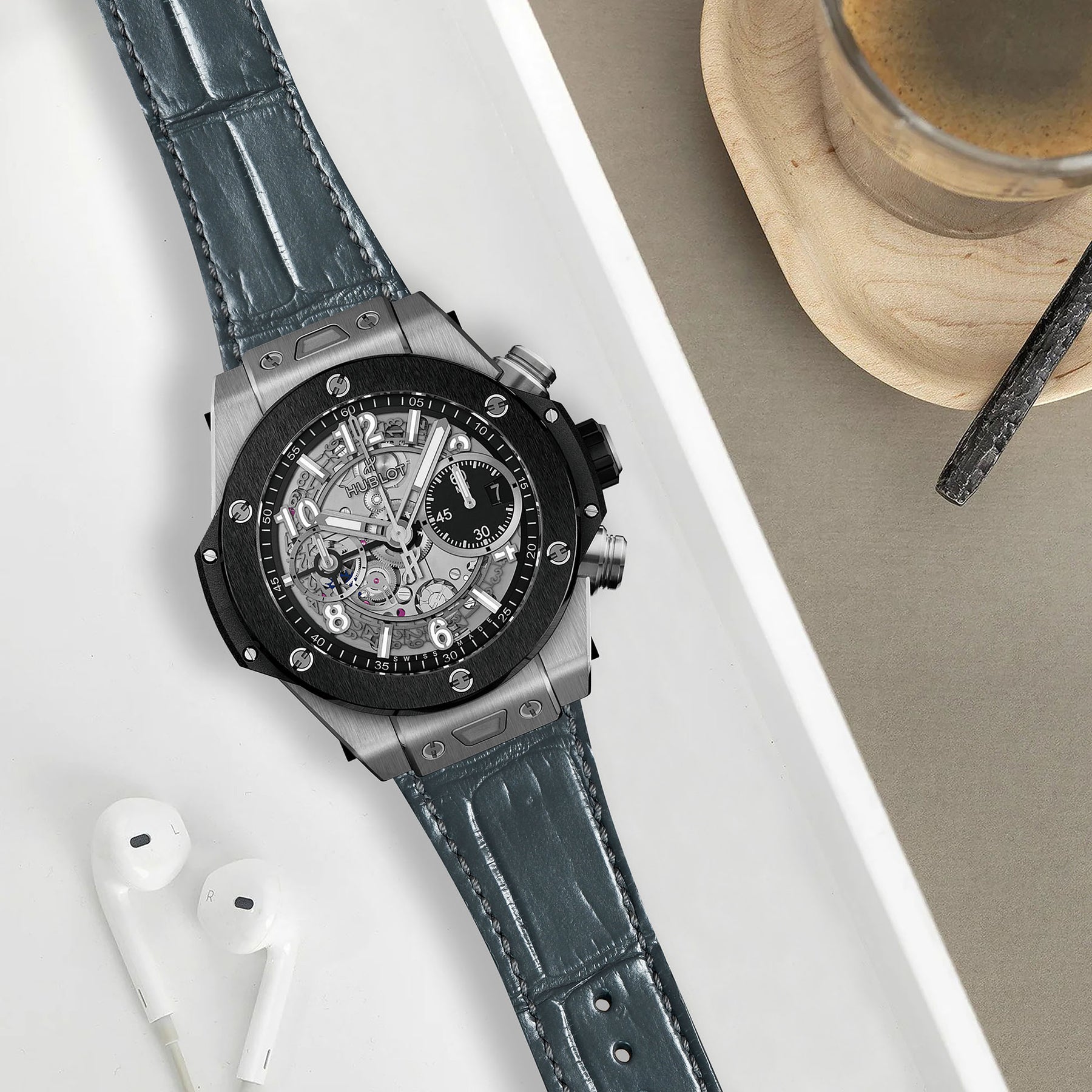 This strap is a statement piece with a firm foot in elegant evening attire and another in jeans and weekend mode. Our Croco straps are made from the centre section of the belly which has very square uniform scales features with a modern click-in system for easy installation and a secure fit. Coming in a wide range of croco leather colours material for Hublot Unico One-Click, you can choose the one that best suits your watch and outfit.