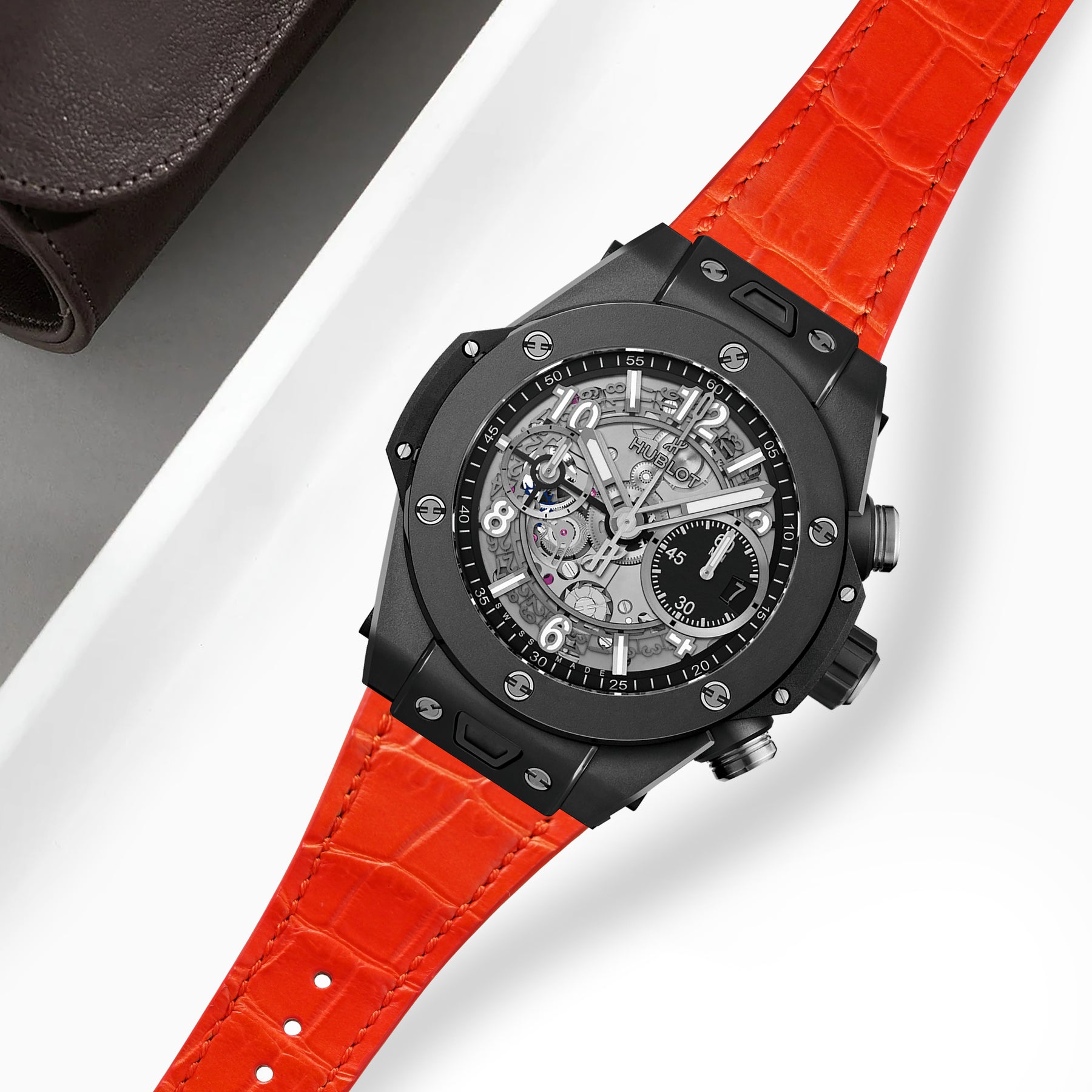 This strap is a statement piece with a firm foot in elegant evening attire and another in jeans and weekend mode. Our Croco straps are made from the centre section of the belly which has very square uniform scales features with a modern click-in system for easy installation and a secure fit. Coming in a wide range of croco leather colours material for Hublot Unico One-Click, you can choose the one that best suits your watch and outfit.