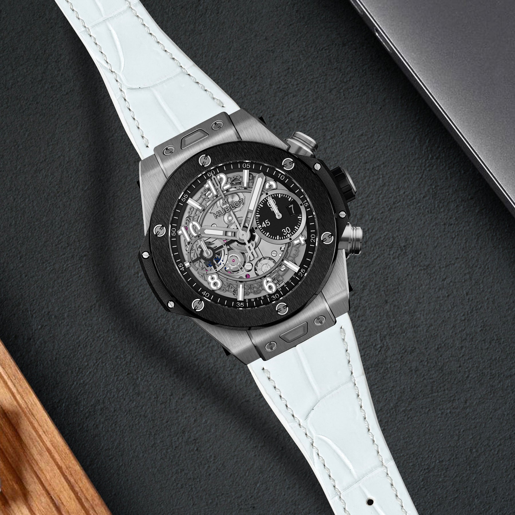 Hublot Unico One Click Straps - Croco White