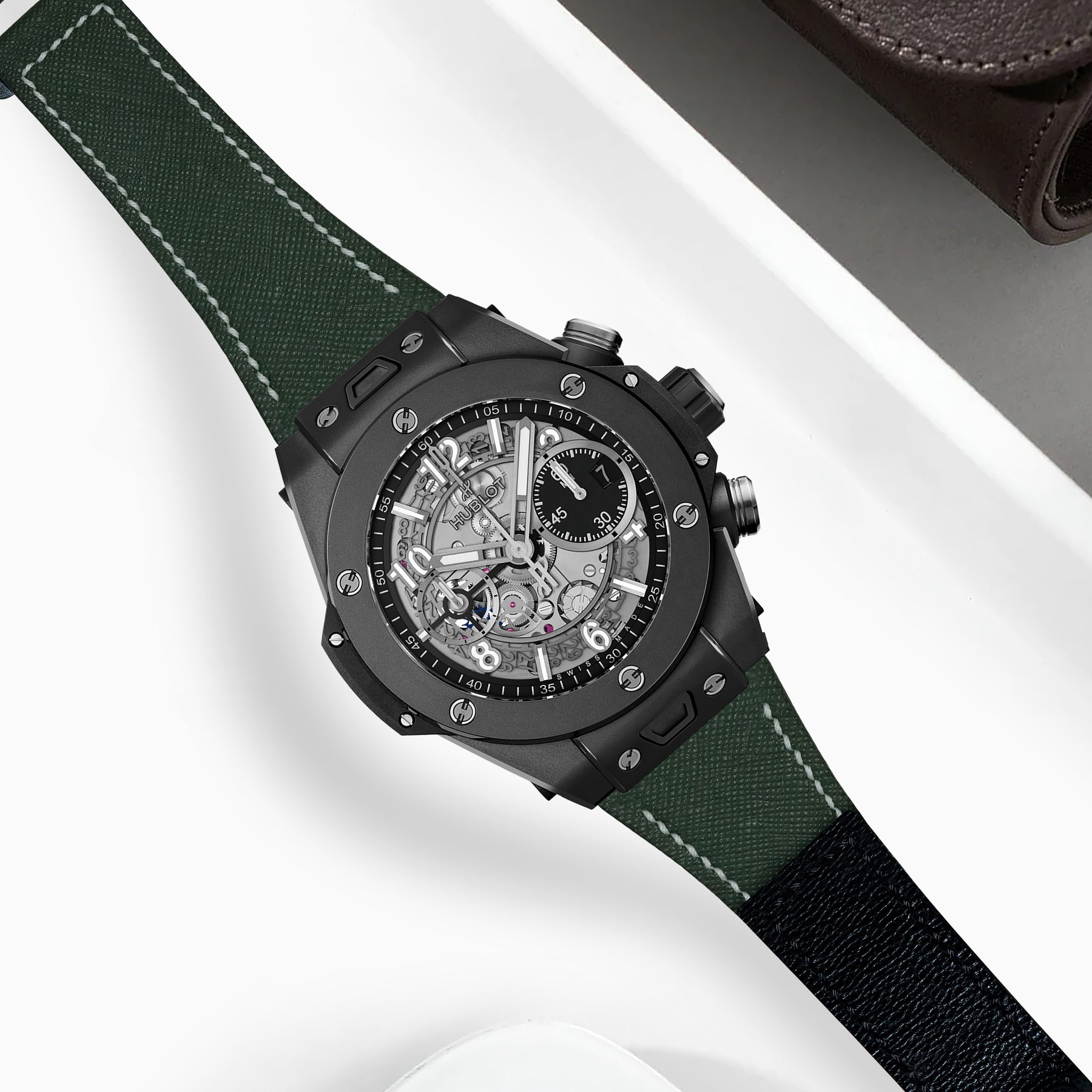 Hublot Unico One Click Straps - Velcro Saffiano Dark Green