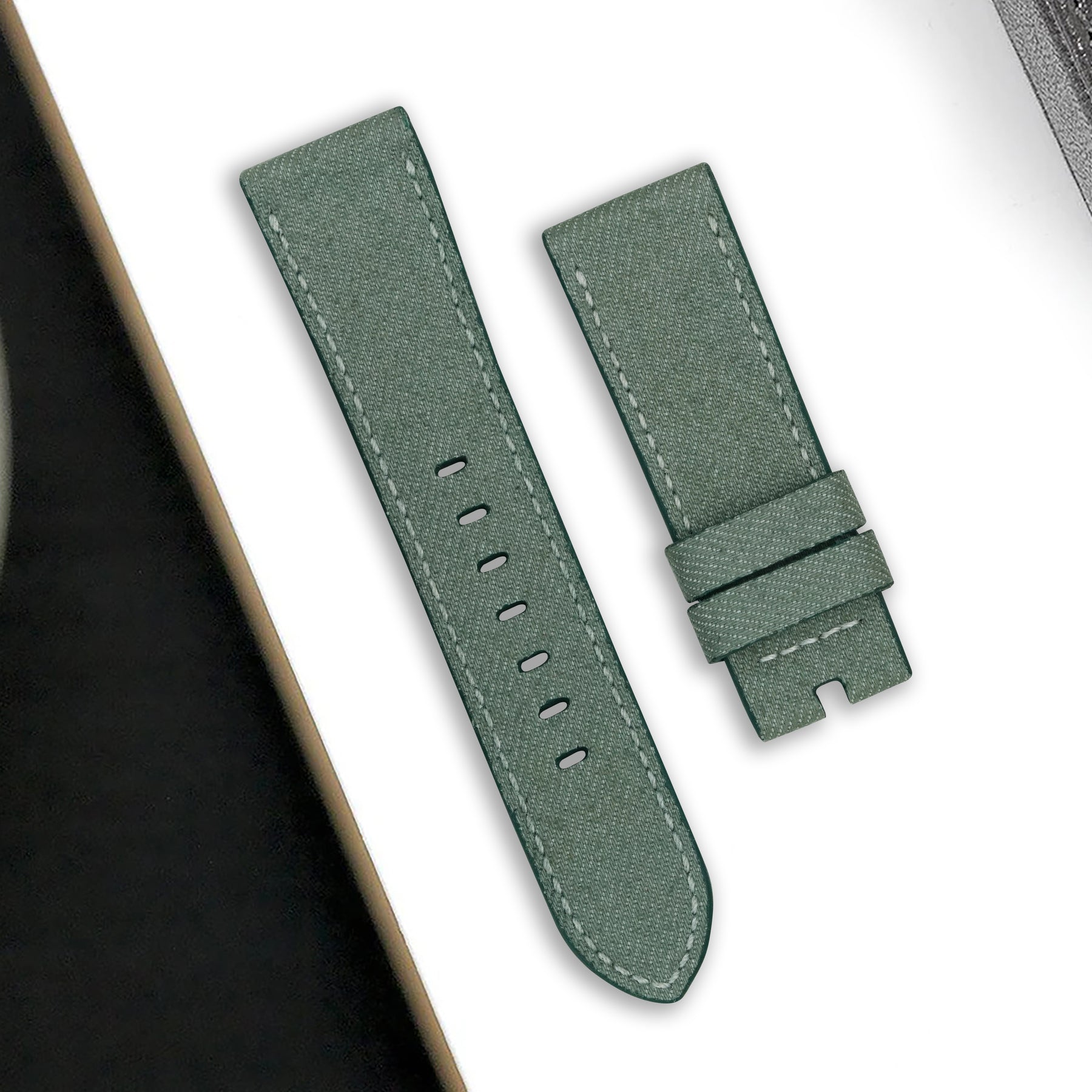 Description : Looking for something more eye-catching? Japanese Denim Sage brings contrast and clarity to your wrist. The muted-green denim tone combined with visible white stitch seams gives the strap a fresh, expressive look that stands out without being loud.