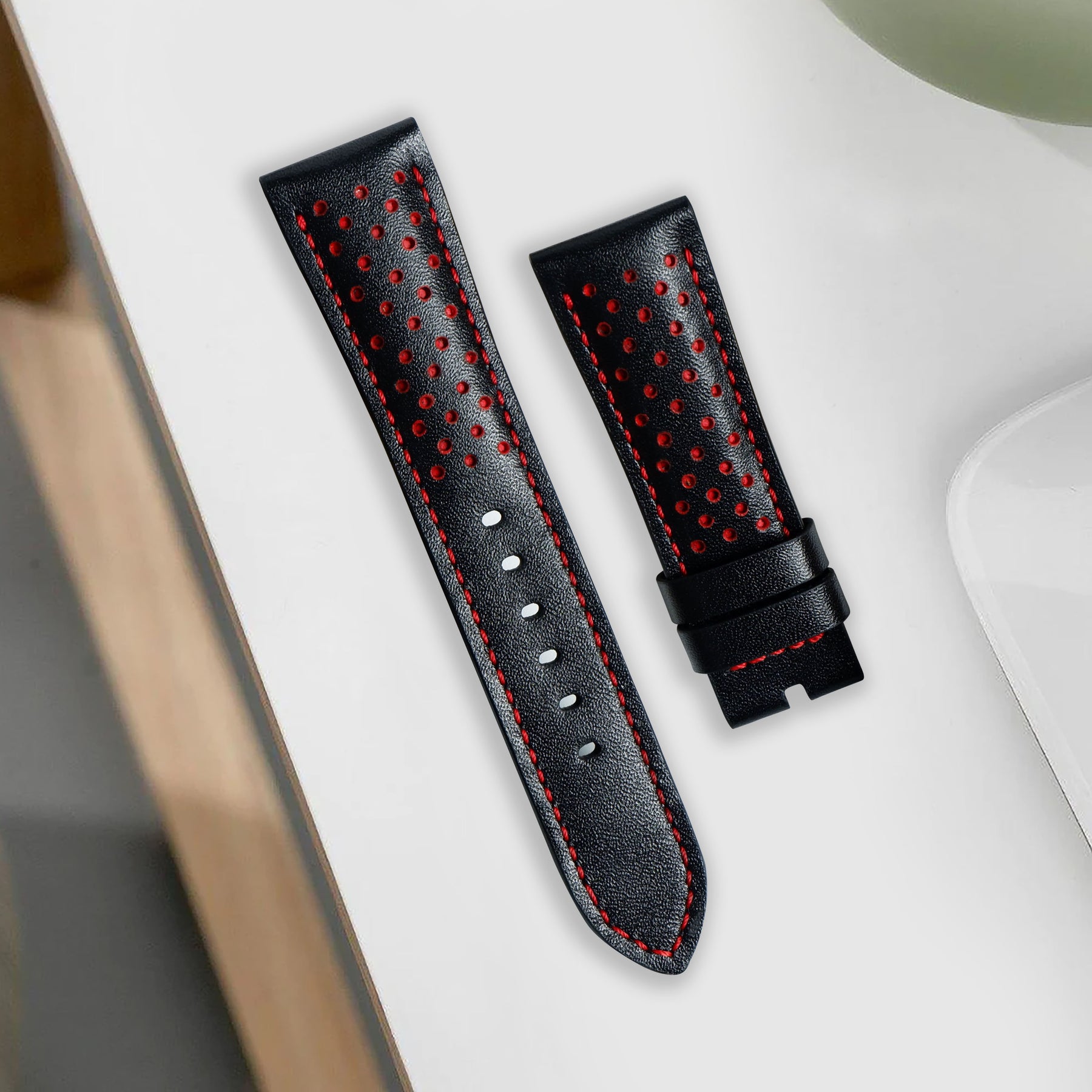 Description : Inspired by the sporty times of the 70’s, these racing straps are an essential to make any sport watch look even cooler. The holes make the strap lighter and more breathable, ideal for warm conditions where you want the comfy feel of a leather strap but don’t want the whole leather feel.