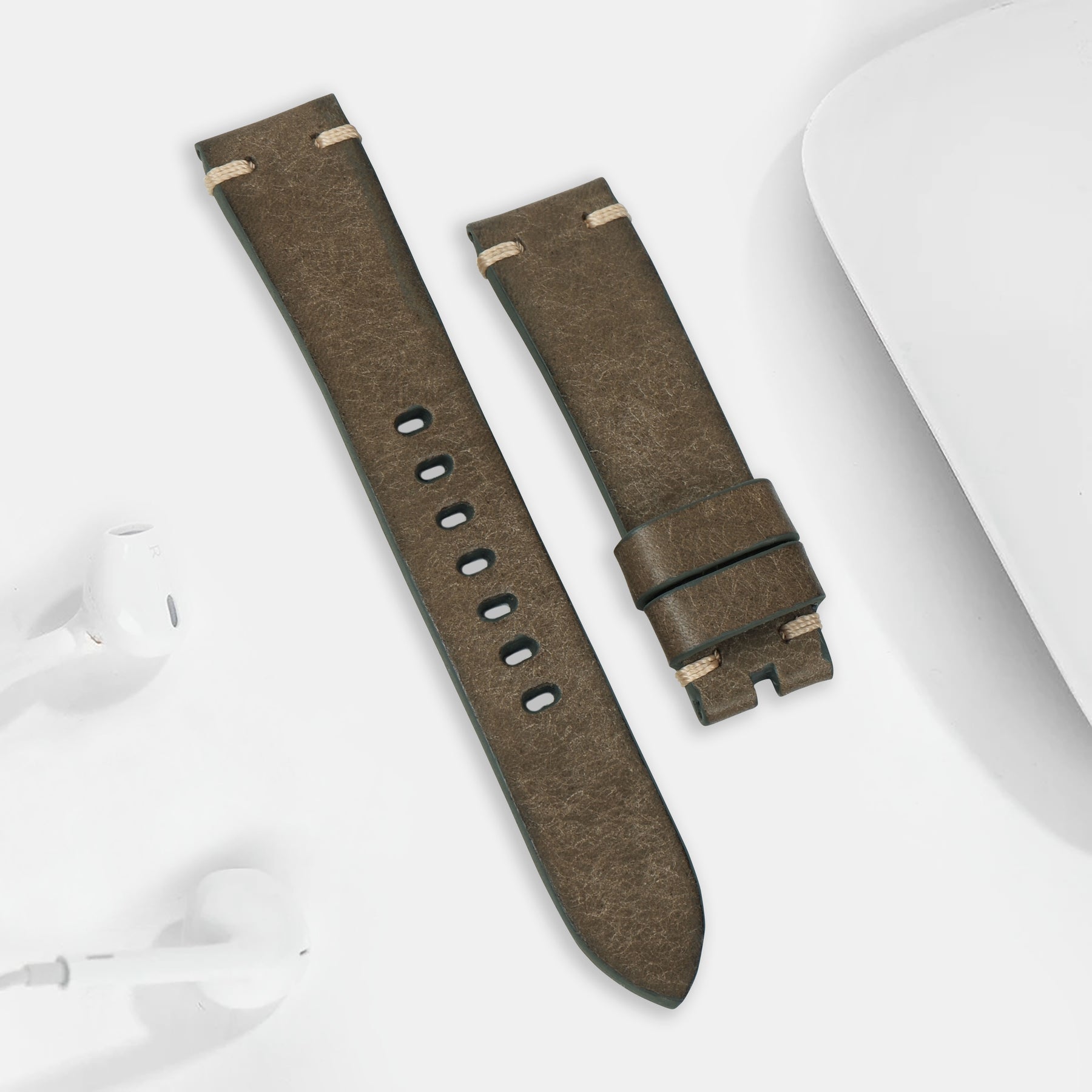 Stitching : Intertwined traditional hand-stitching with side stitching to give it a modern style and character. (you can choose stitching that either contrasts or blends into the strap color).
